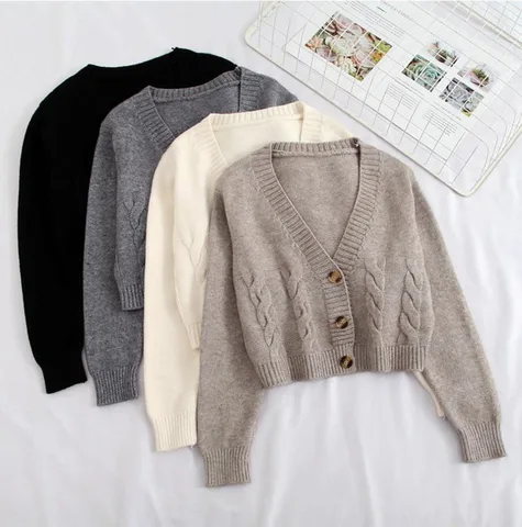 Autumn Winter Short High Waist Solid Color Sweater Women Single-breasted Knit Cardigan Small Sweter Women Jacket New Top Femme
