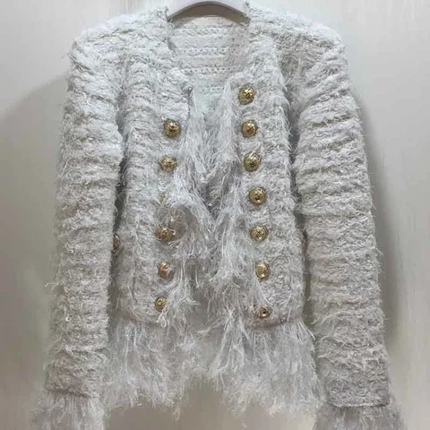 HIGH STREET Newest 2023 Fall Winter Fashion Designer Jacket Women Lion Buttons Embellished Tassel Knit Cardigan