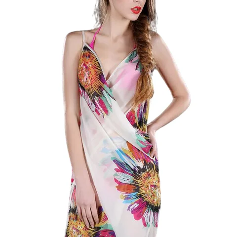 Women Summer Beach Dress Bikini Cover-ups Swim Wear Cover Up Tunic Beach Veil Sexy Deep V-Neck Robe Caftan Female