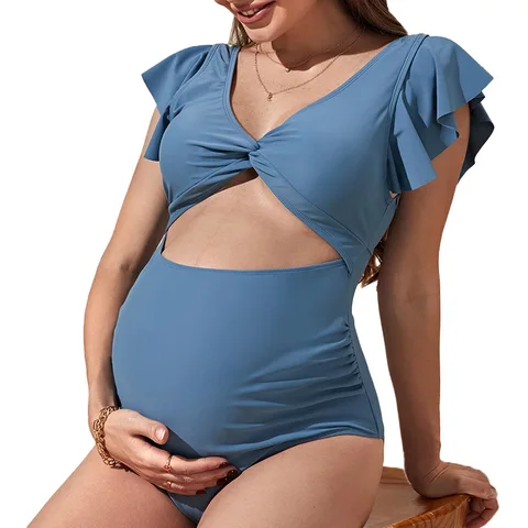 2023 Fashion New Loose Bathing Suit Women's One-piece Pregnant Swimwear Solid Color Monokini Hollow Out Swimsuit Beach Style