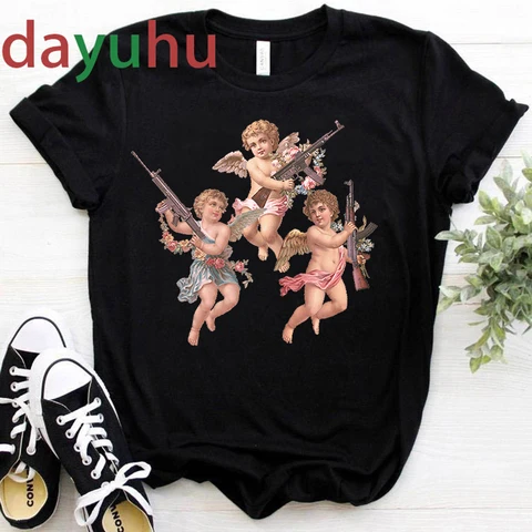 Angel Women T Shirt New 2020 Harajuku Vintage Tshirt Female Aesthetic Kawaii Tumblr Grunge T-shirt Femme Top Tee Fashion Short