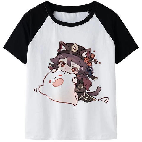 Genshin Impact T Shirt Harajuku Cartoon T-shirt Unisex Kawaii Summer Tops Women/Men Cute Hu Tao Graphic Tees Funny Keqing Female