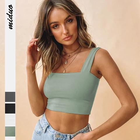Summer Women Sexy Crop Top Ladies Square Neck Sleeveless White Casual Off Shoulder Cami Sexy Backless Basic Tank Tops 121527WTA