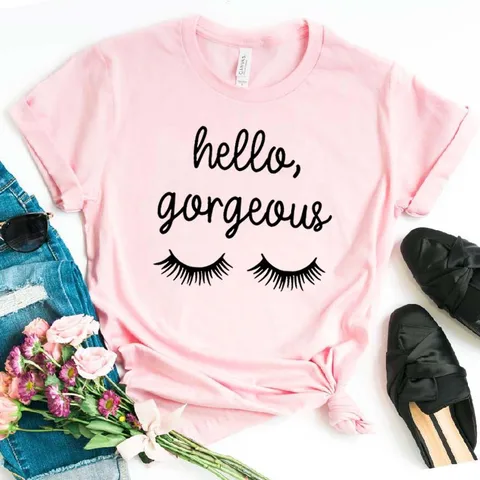 Hello Gorgeous eyelash Women tshirt Cotton Casual Hipster Funny t-shirt Gift Lady Yong Girl Top Tee ZY-297