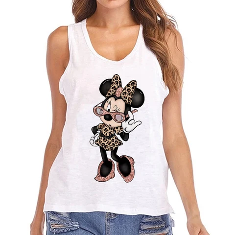 Harajuku Y2k Tank Top Women Disney T Shirt Minnie Mickey Mouse Printed T-Shirt Women's Clothing Kawaii Vest T Shirt 90s T-shirt