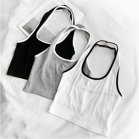 Sexy Vest Female Tank Tops Basic Solid Vest Women Sports Vest Fashionable Halter Neck Crop Tops Yoga Sleeveless T-Shirt