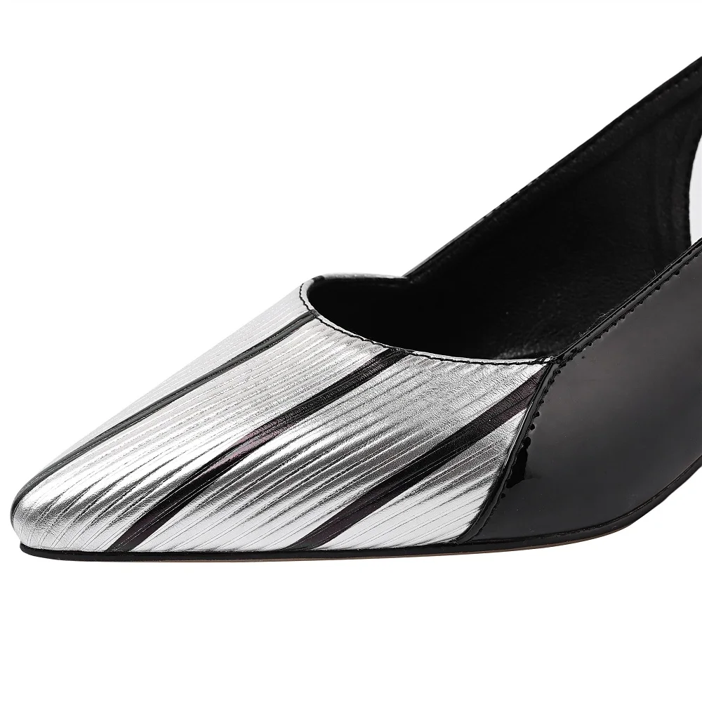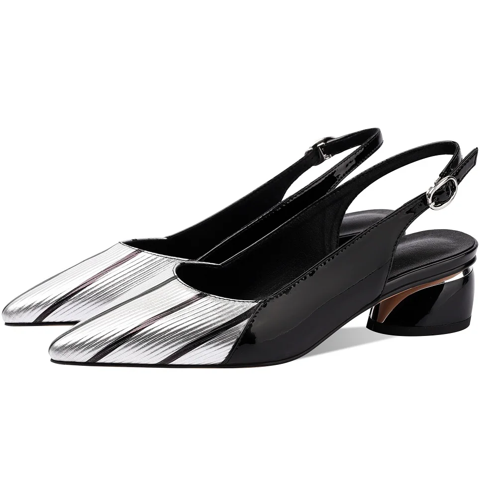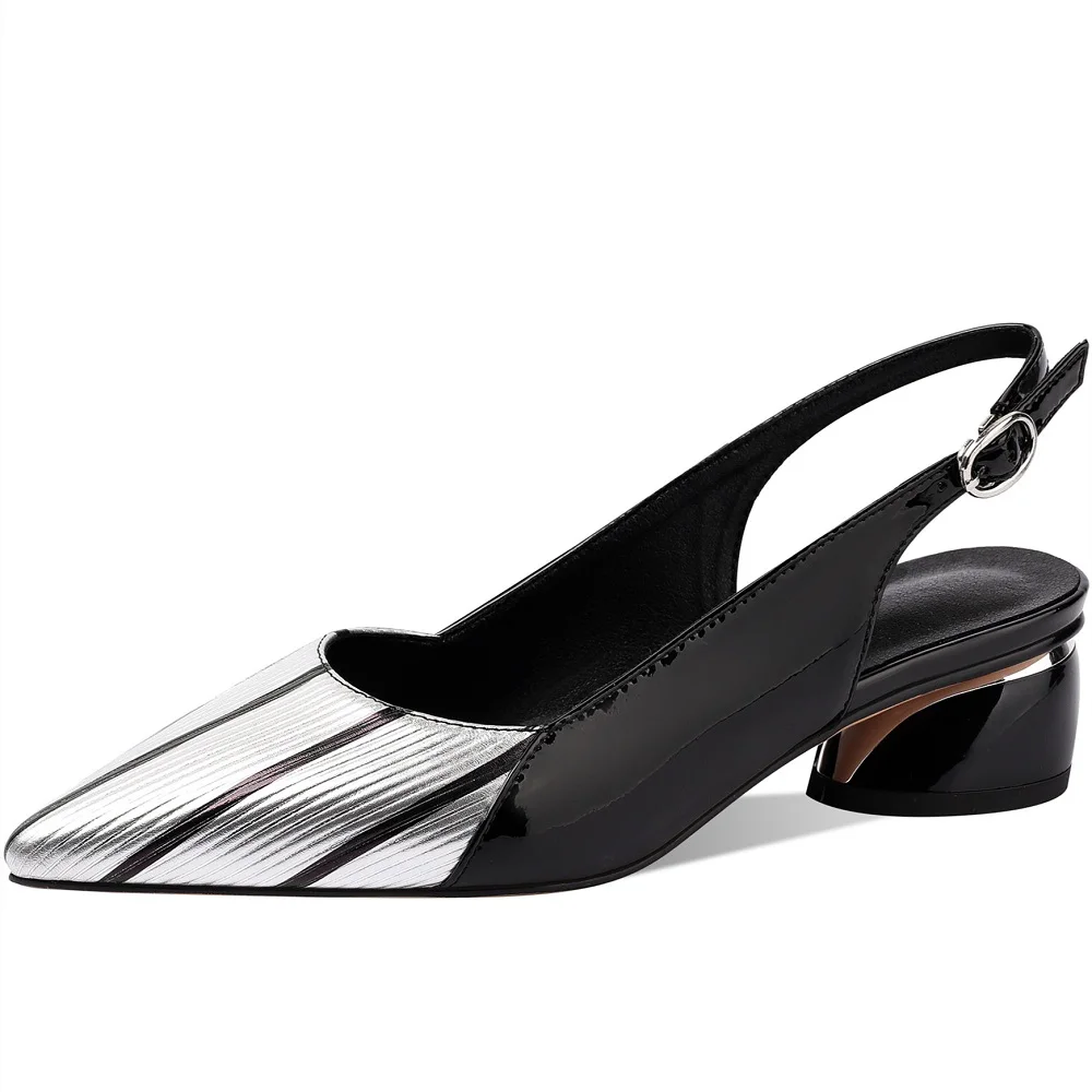 【JOCHEBED HU】Fashion Women Special Heeled Sandals Pointed Toe Mixed Color Striped Genuine Leather Ladies Shoes 33-43