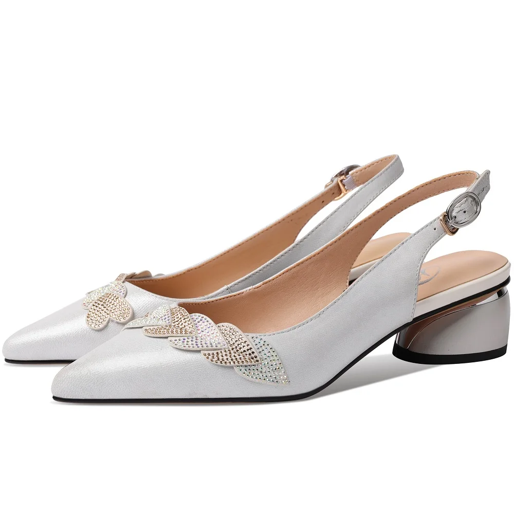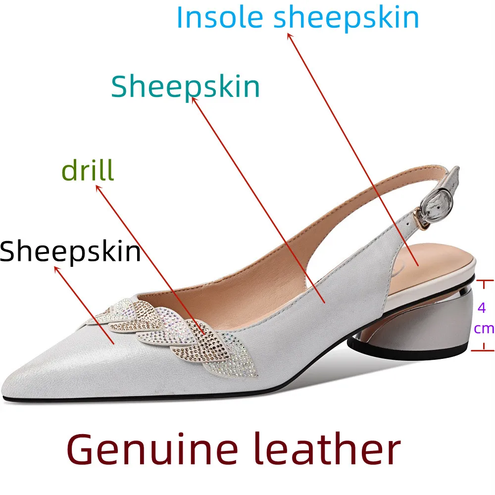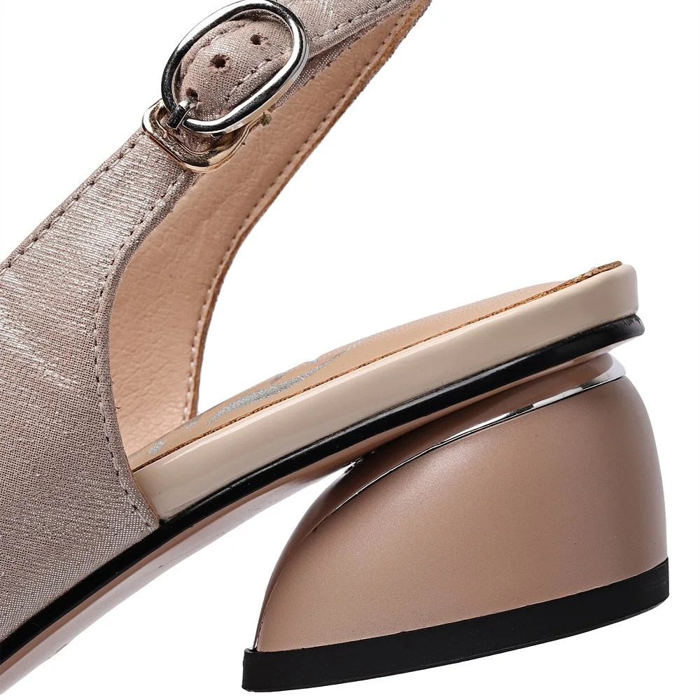 【JOCHEBED HU】Genuine Leather Hollow Sandals Square High Heel Summer Women Shoes Back Strap Pointed Toe Female Pumps Size 33-43