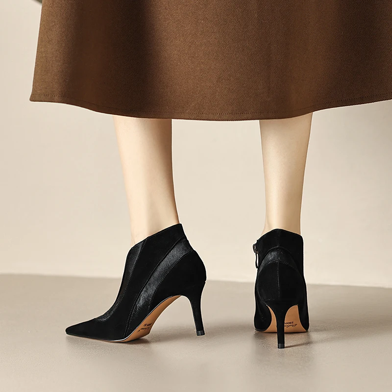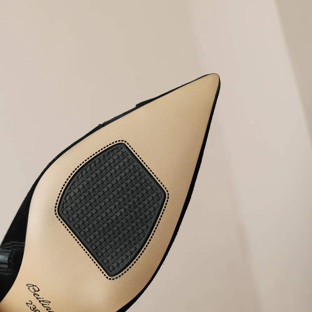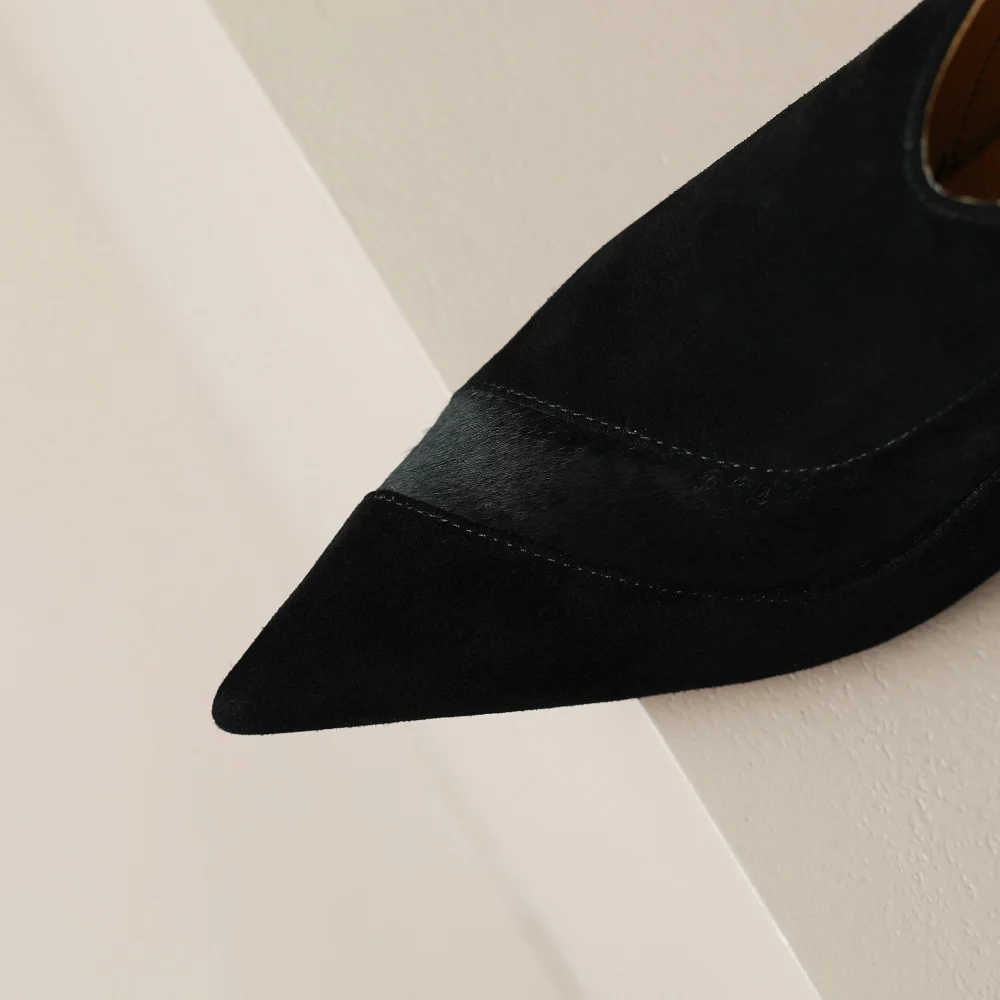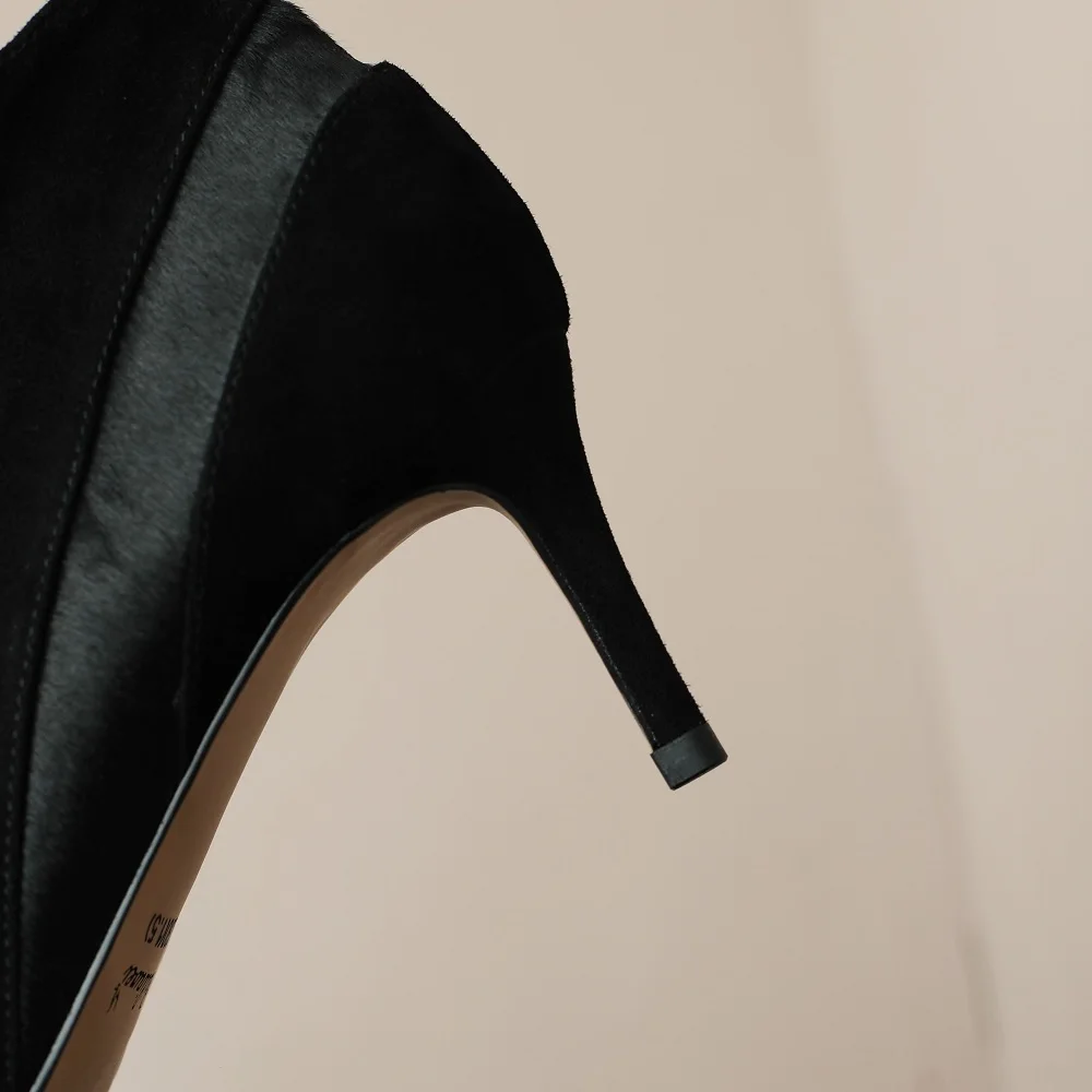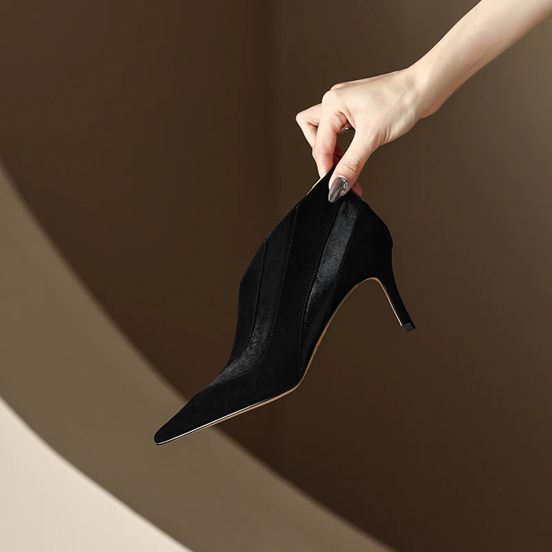 【JOCHEBED HU】Women New Fashion Pointed Toe Suede Genuine Leather Cattle hair Stiletto Heel Pumps High Heels Formal Dress Shoes
