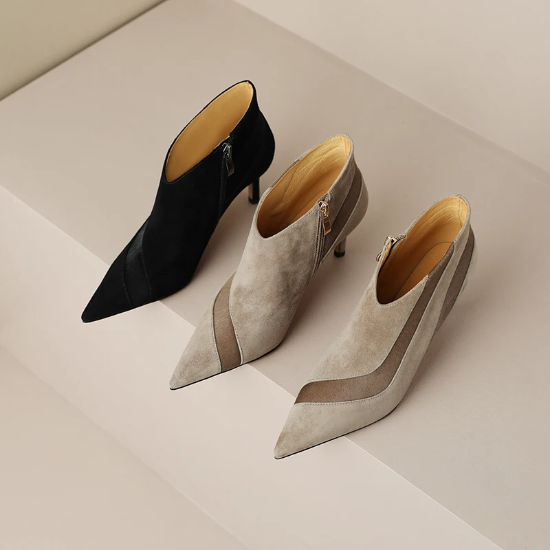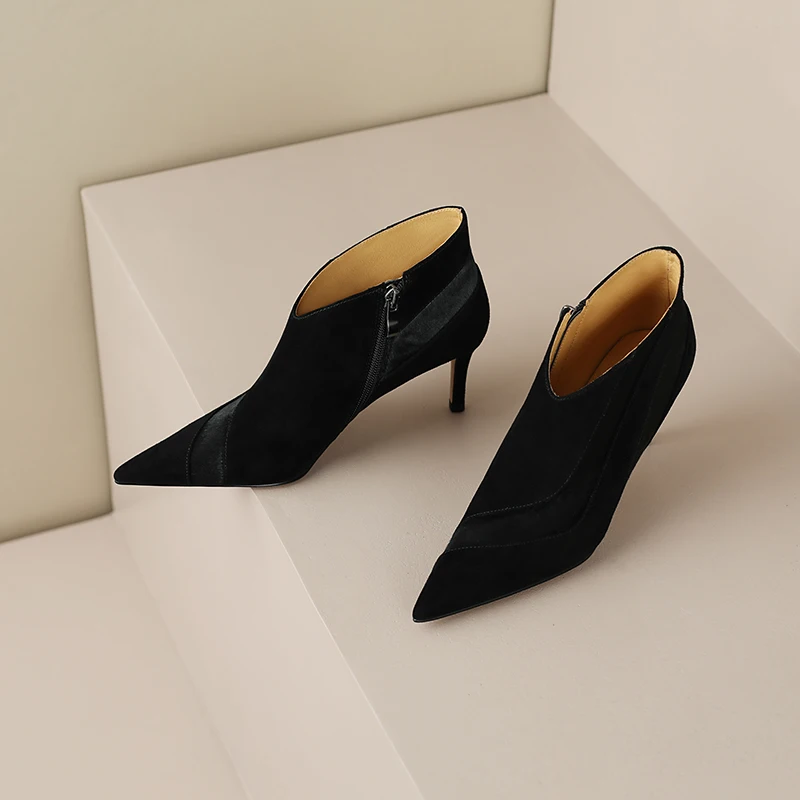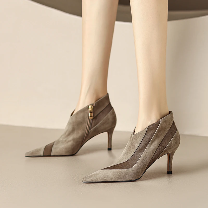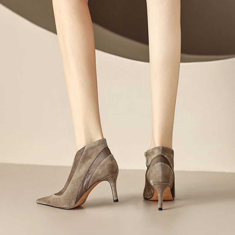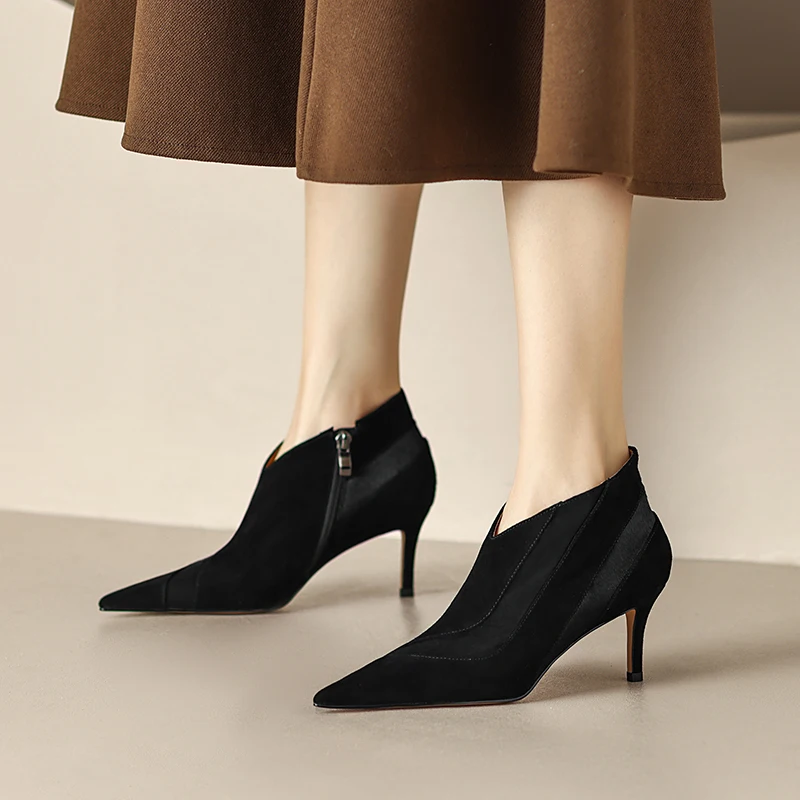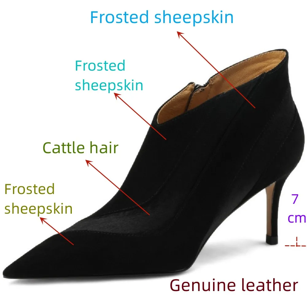 【JOCHEBED HU】Women New Fashion Pointed Toe Suede Genuine Leather Cattle hair Stiletto Heel Pumps High Heels Formal Dress Shoes