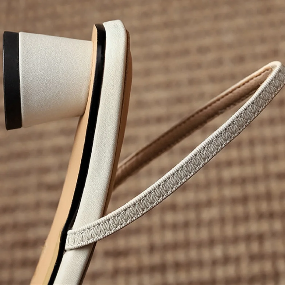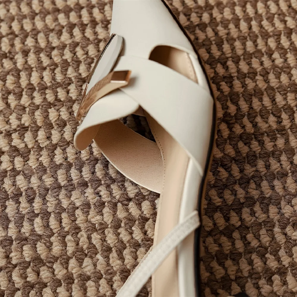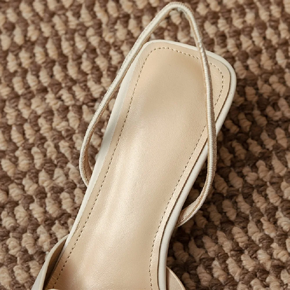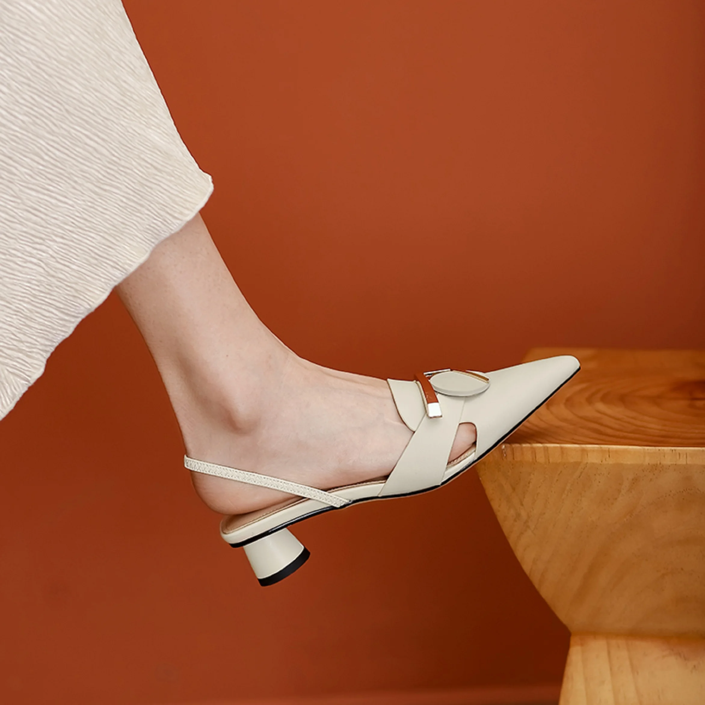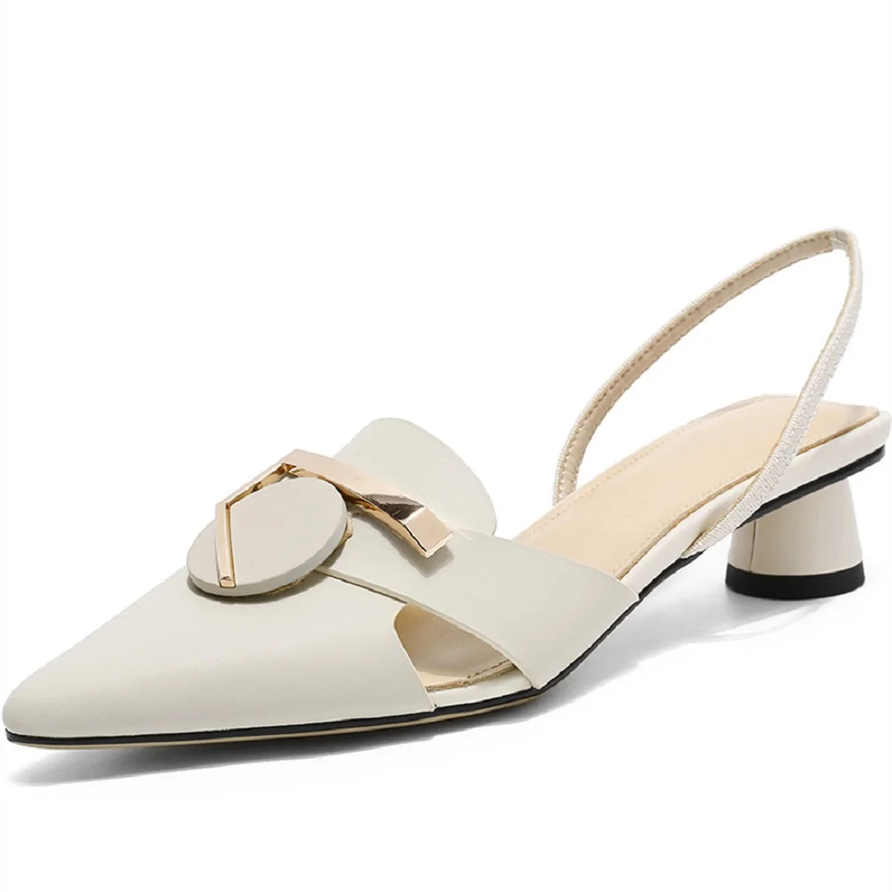 【JOCHEBED HU】Women's Genuine leather high quality base shoes point toe slipper and middle heel sandal Shoes 33-43