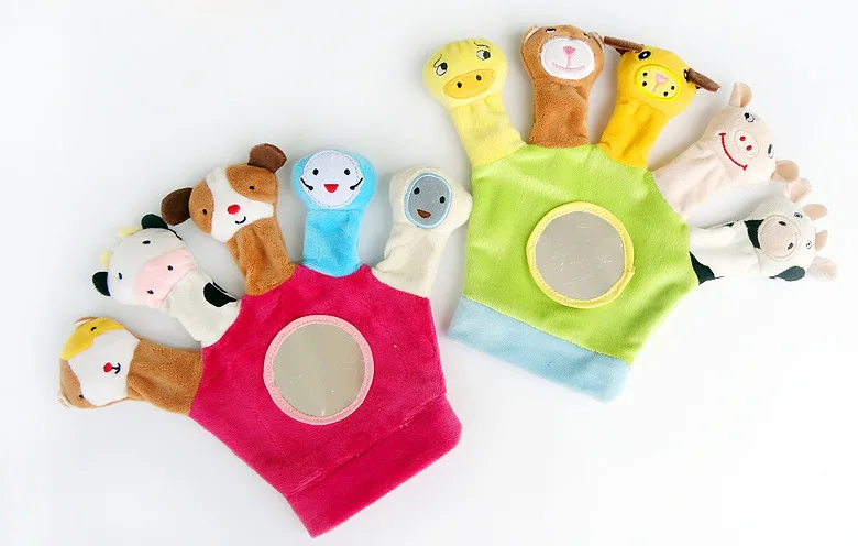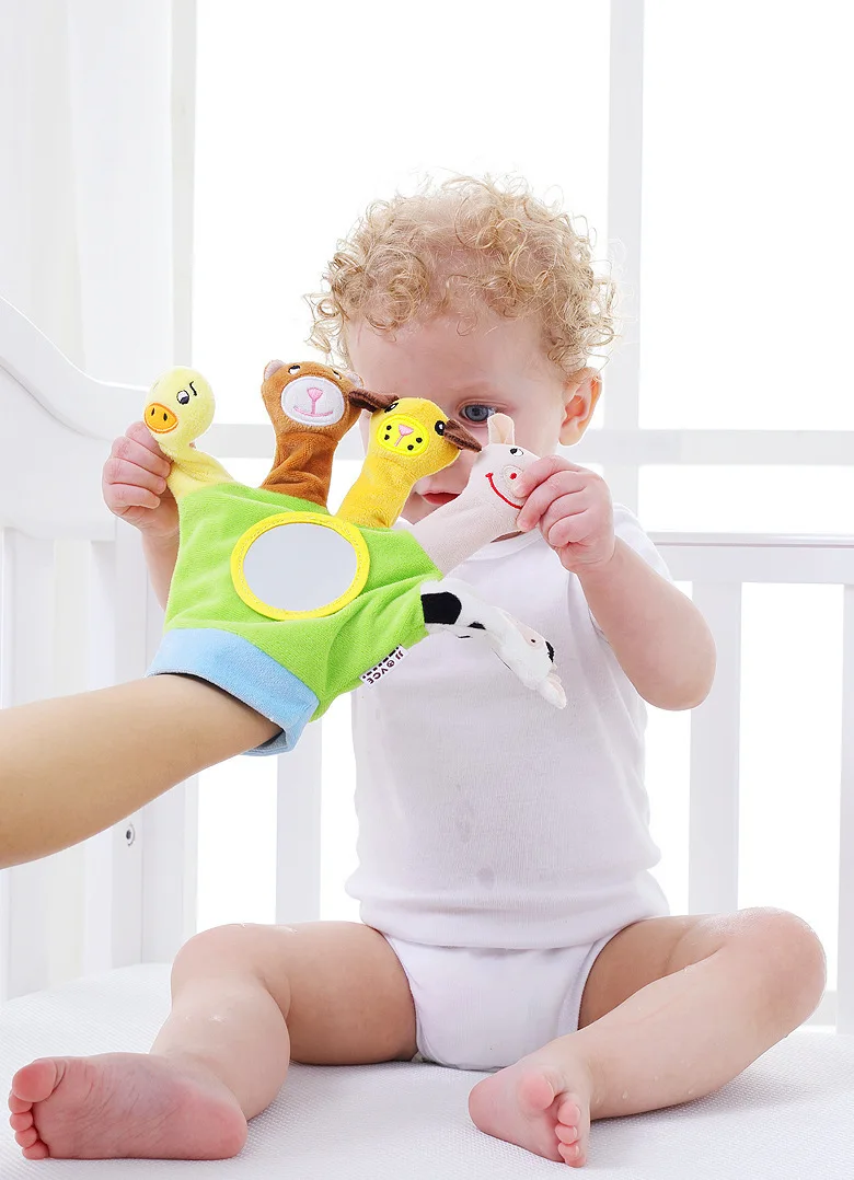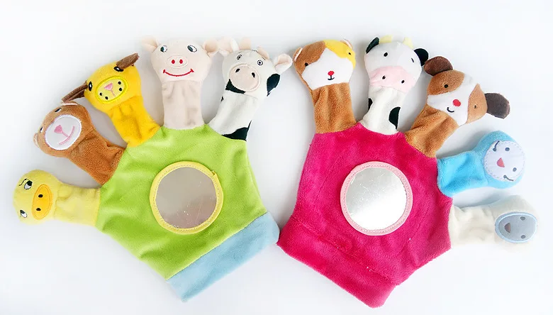 Function: Multifunctional hand-held finger puppet. To attract the baby’s attention, there is a safety mirror function in the middle of the palm. This requires the protective film to be removed before use. Five different animals can tell stories to babies.