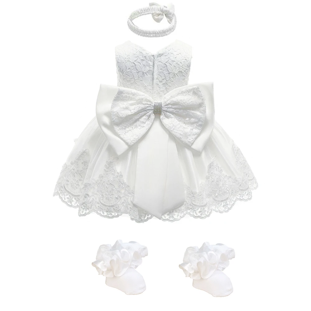 0-5 Years Old Baby Children Princess Dress One Year Old Dress Bow Lace Dress Evening Dress Baby Birthday Combination Set