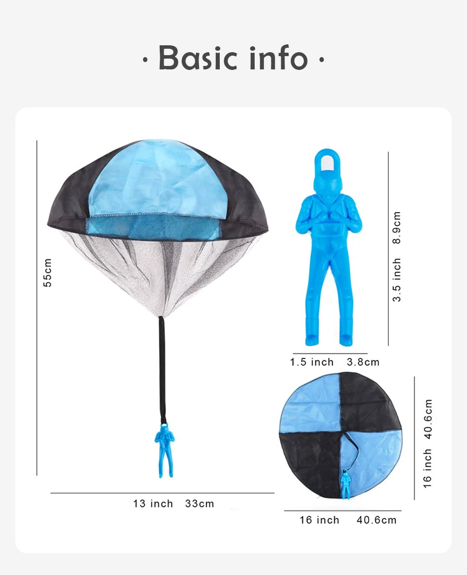 • LANDING PRINCIPLE – Landing slowly, this parachute toy imitates the real landing situation, improving children’s manipulative ability, operational skill, intelligence and creativity while playing simulation games.