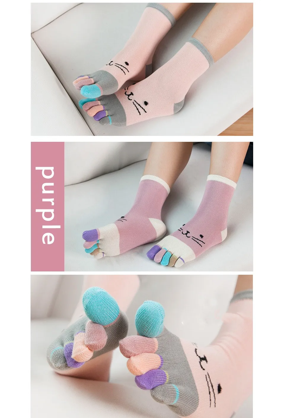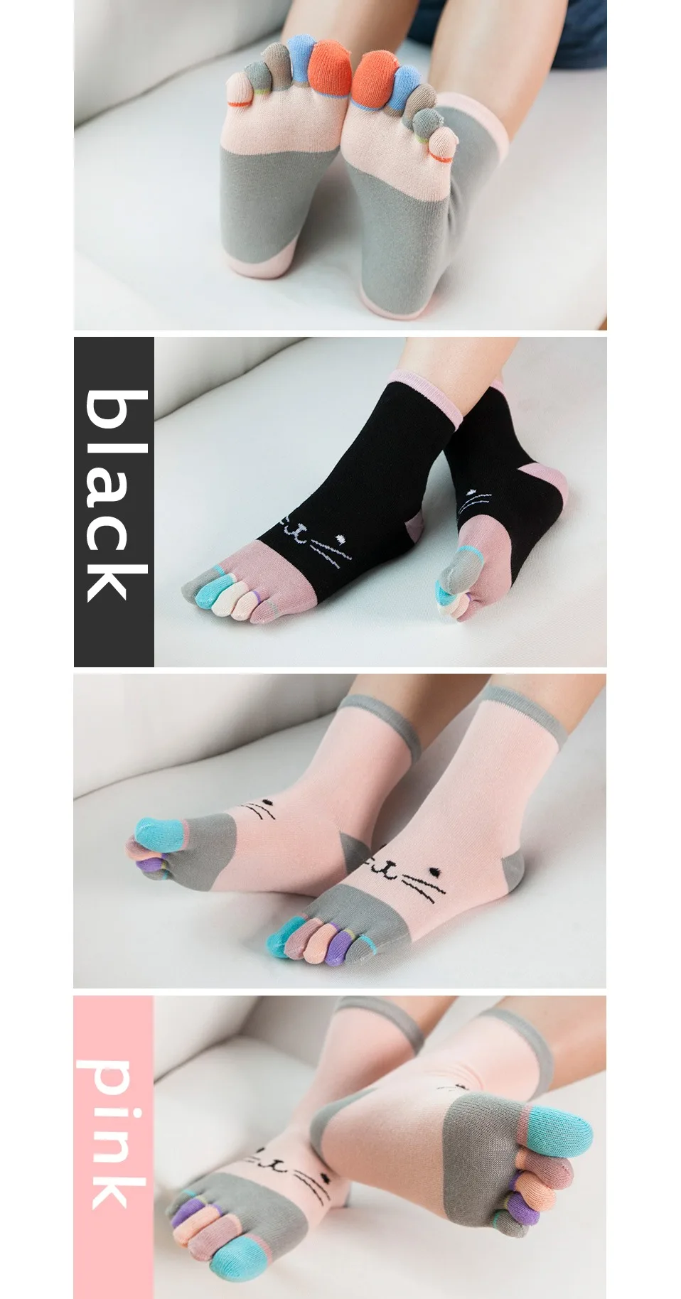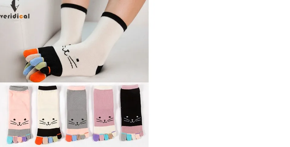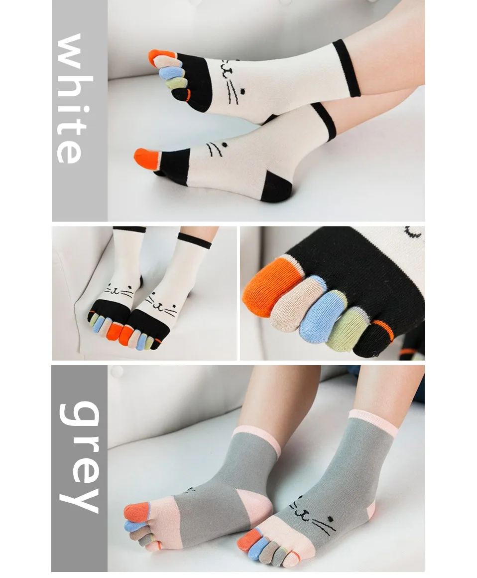 1 Pairs Pure Cotton Women Girl Five Finger Short Socks Colorful Cat Breathable Young Casual Harajuku Socks With Toes Hot Sell