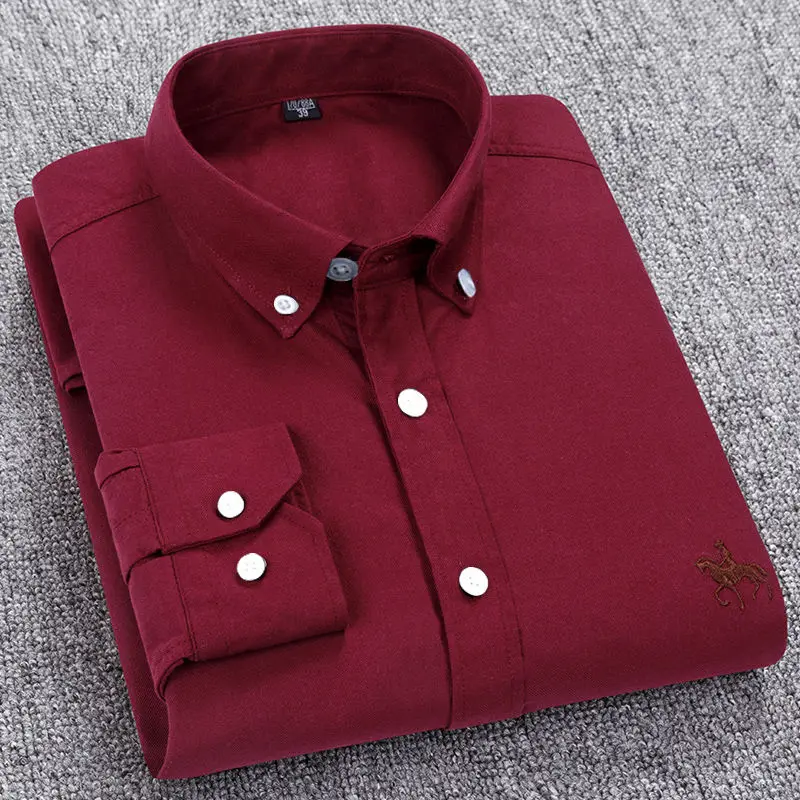 100% Cotton Oxford Plaid Solid Color Striped Shirt Tops Casual Long Sleeve Shirt Slim Fit Shirt Men Camisa Social Korean Clothes