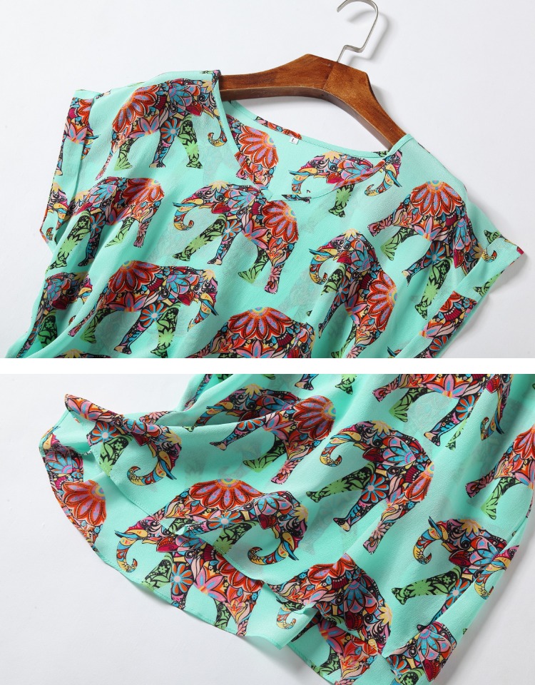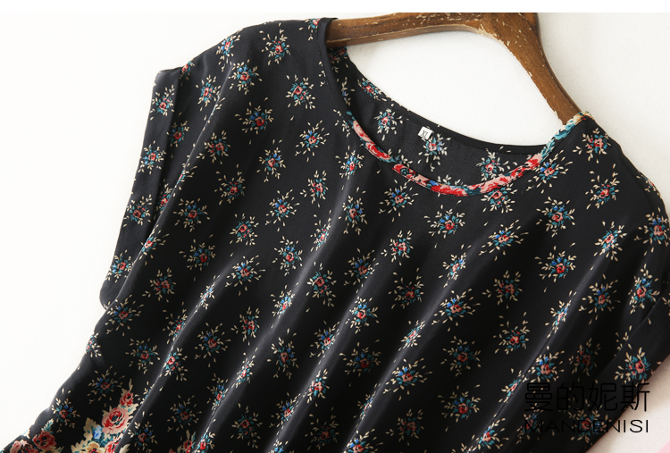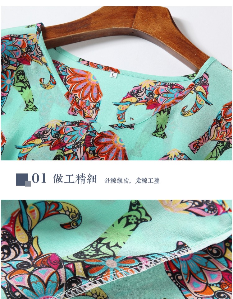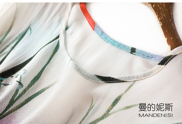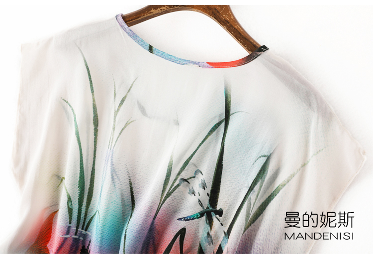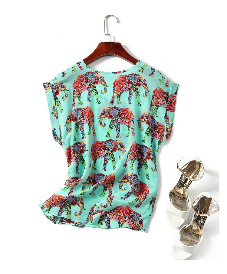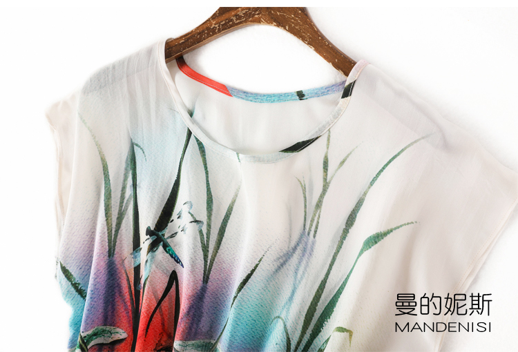 100% natural silk short-sleeved shirt female silk wild bottoming shirt personalized printing large size blouse