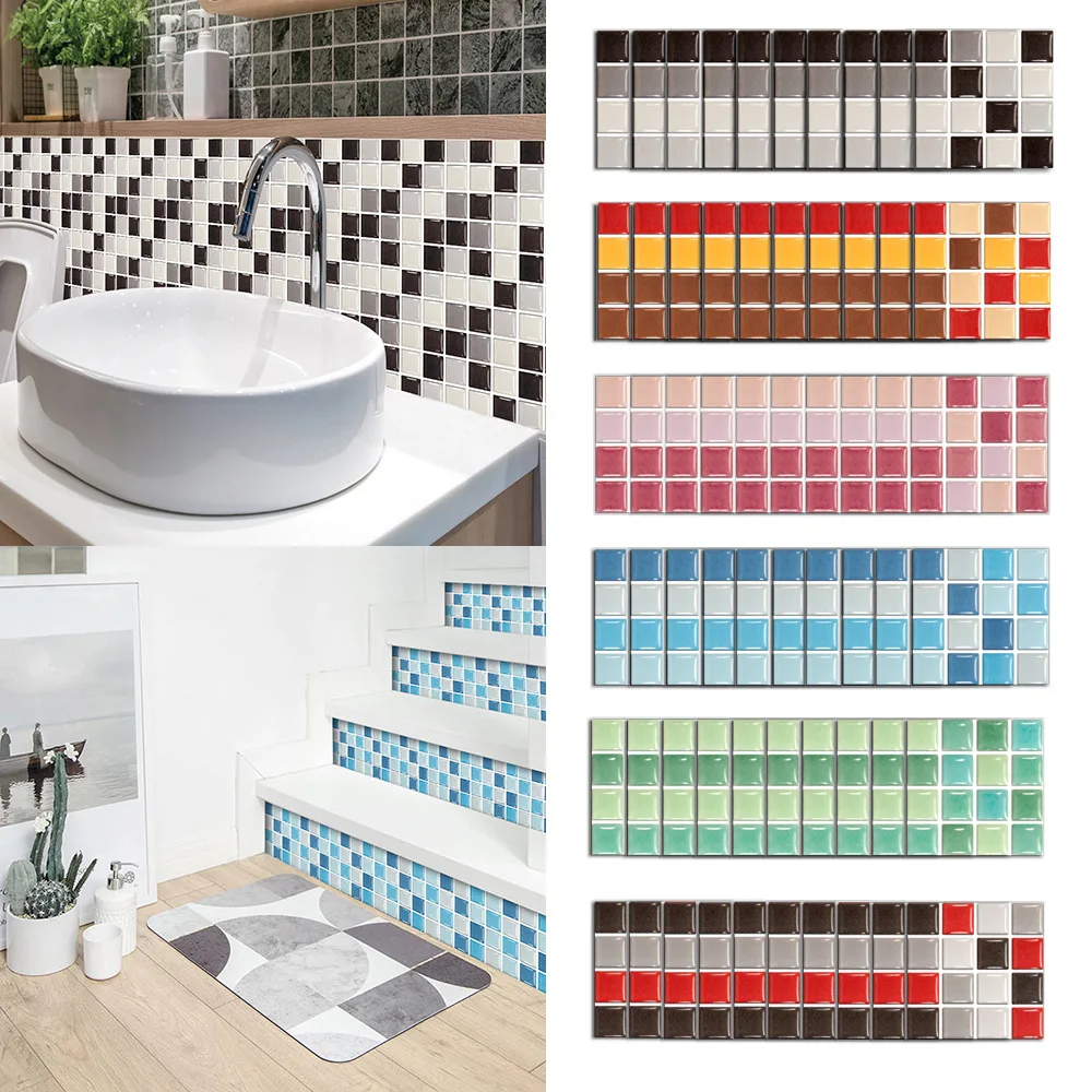 10pc Self Adhesive Tile 3D Sticker Kitchen Bathroom Wall Sticker Decoration Tile Decoration Film For Tiles /Floor Bathroom