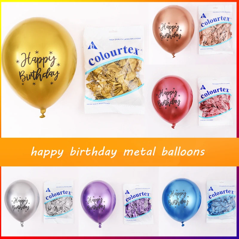 10Pcs 12inch Happy Birthday Balloon Decor Rose Gold Chrome Metallic Latex Balloons For Kids 1st 30th Birthday Party Metal Globos