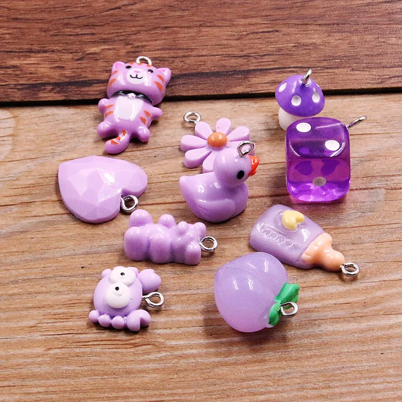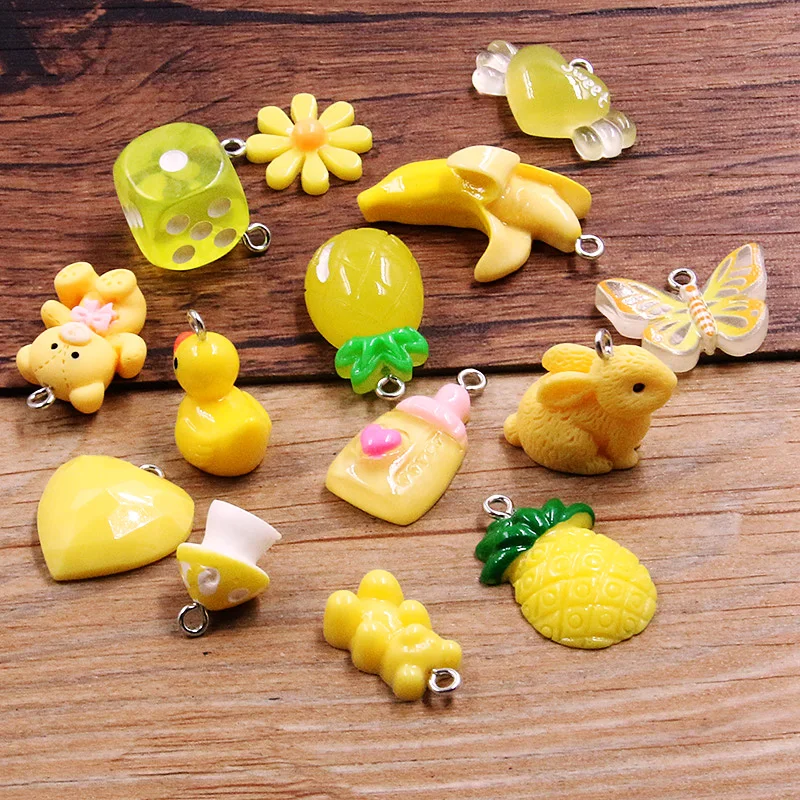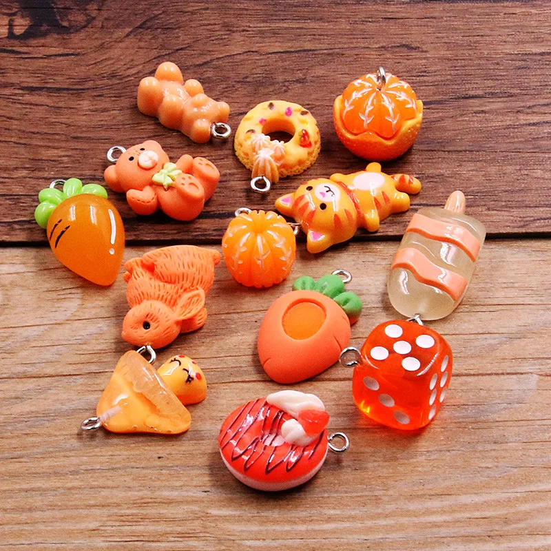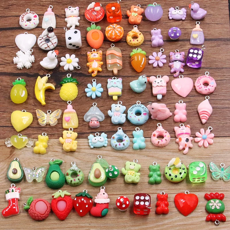 10Pcs 8 Color Mix Fruit Animals Flowers Sieve Resin Earring Charms Diy Findings Keychain Bracelets Pendant For Jewelry Making