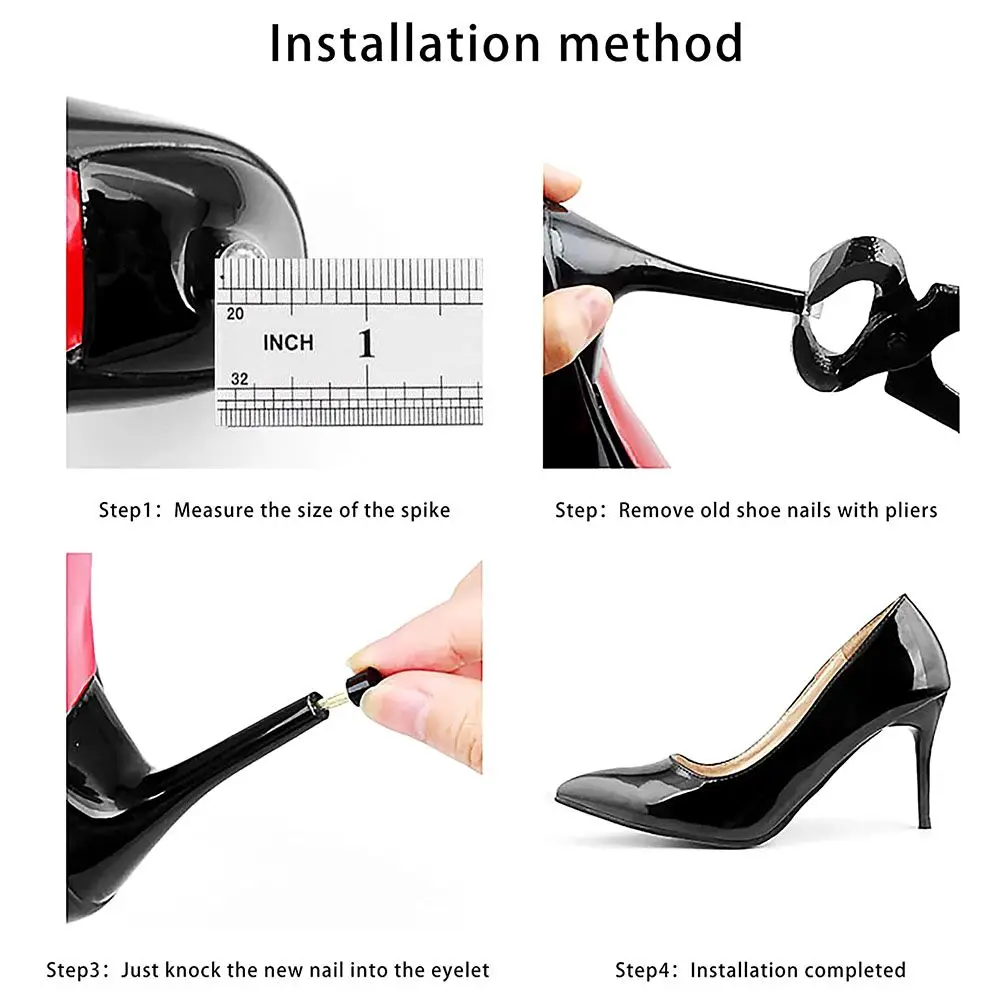 10Pcs Black High Heel Repair Pins Women Stiletto Replacement High Heel Nails Heel Stoppers Protect Heels Tips Shoe Repair Supply