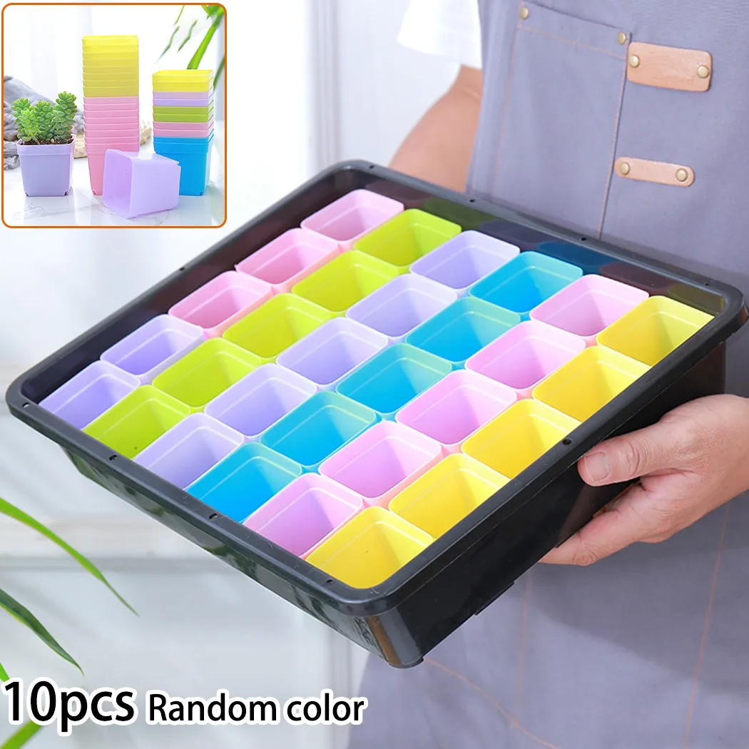 10pcs Flower Pot Nursery Box 5.5cm Mini Square Flower Pot Colorful Plastic Plant Basin Succulent Planters Trays Transplant Pots
