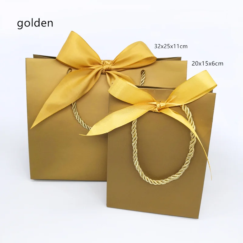 Color: beautiful pink white, black, blue, wine red, gray and gold gift bag paper packaging, package boxes ,with golden handbags and ribbons