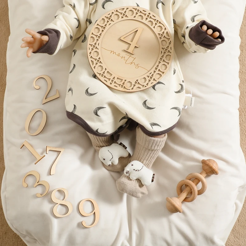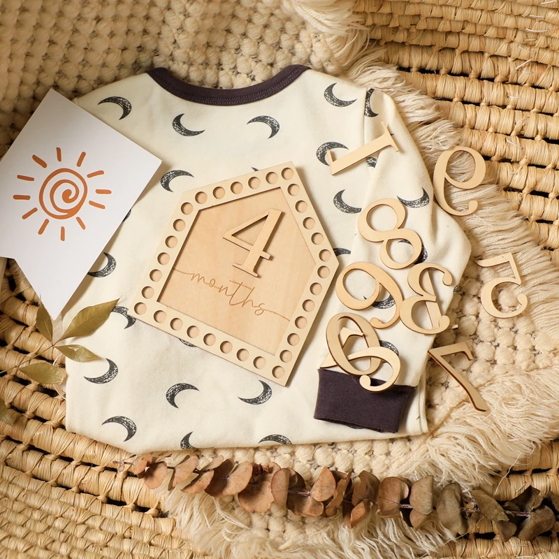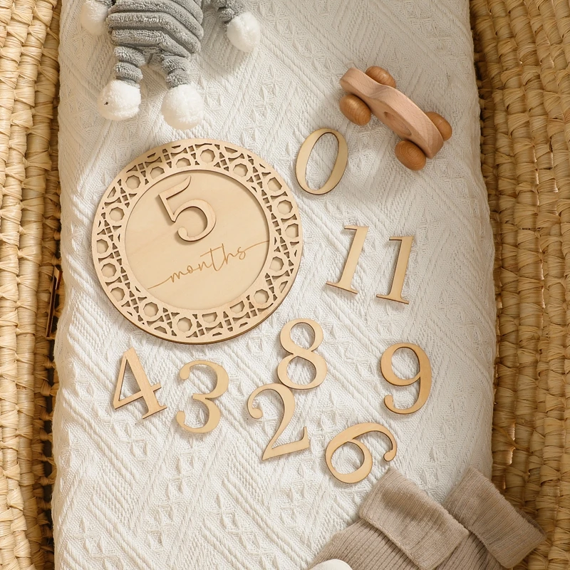 11pcs/set Wooden Baby Milestone Cards Bohemian Style Milestone Memorial Monthly Baby Commemorativenir Newborn Photo Accessories