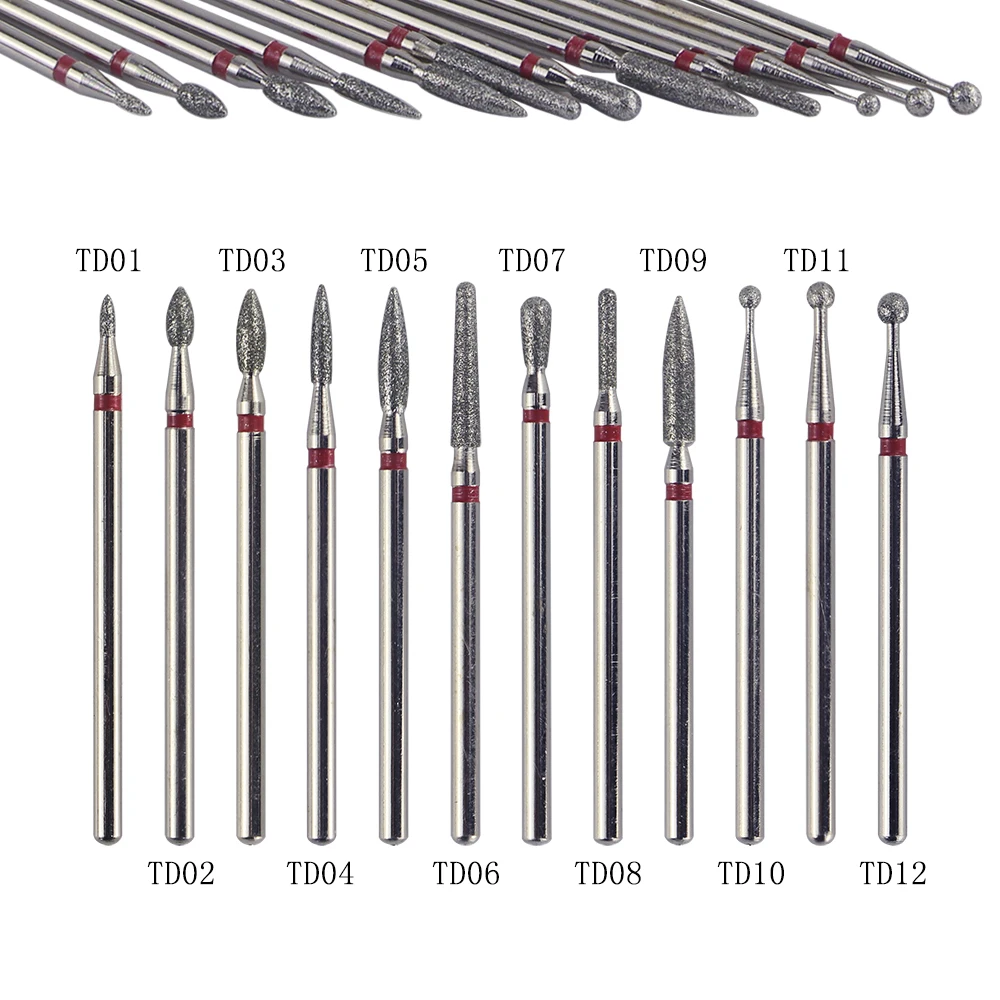 12 shapes Diamond Nail Drill Milling Nail Drill Bits Cuticle Cutter for Manicure Nail Files Electric Milling Burr Grinder TD1-12