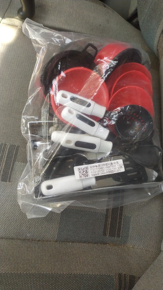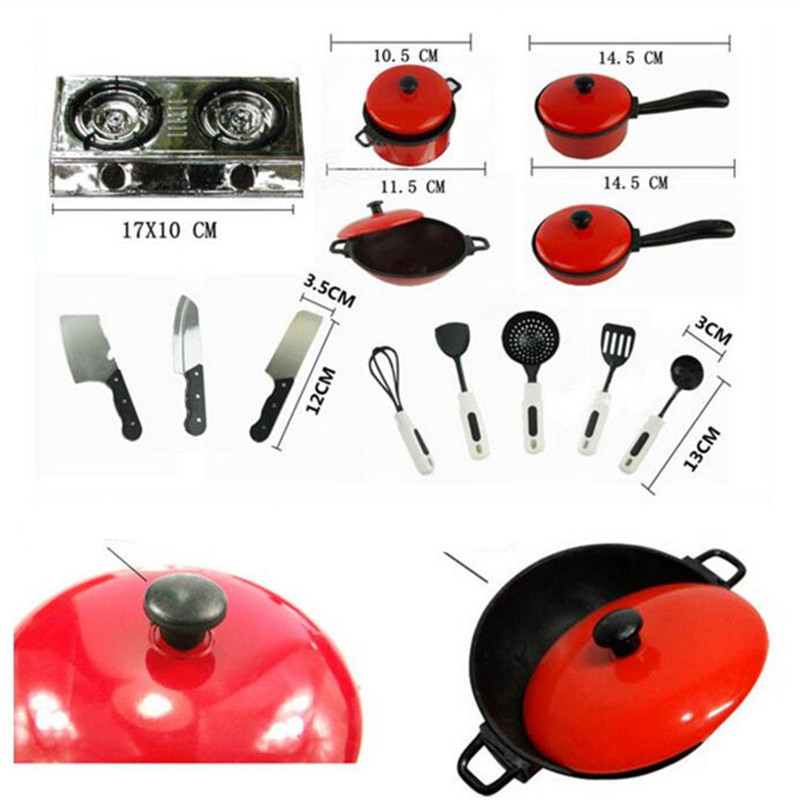 Items:Features a miniature portable stove top,utensils(cooking pans,spatulas,shovel,spoon,whisk,knife,pot,etc).Everything your little one needs to pretend play as a chef.
