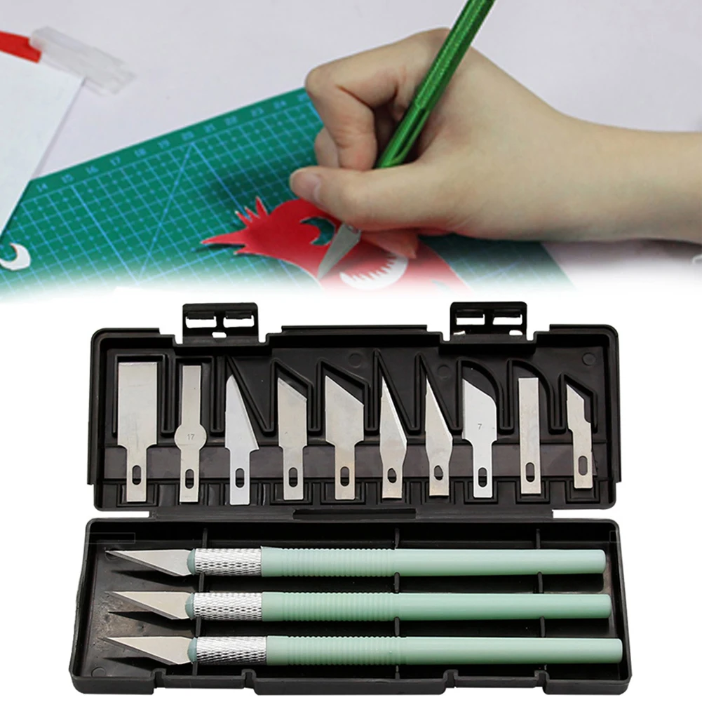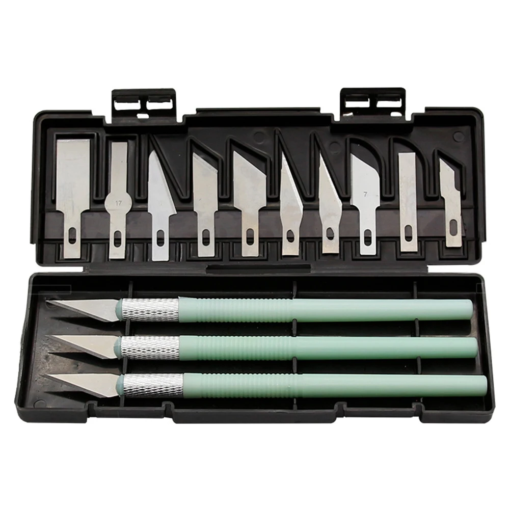 13Pcs/set Art Carving Cutter With Box Paper Cutter Metal Blade Wood Carving Knife Blade Replacement Operation Scalpel Craft