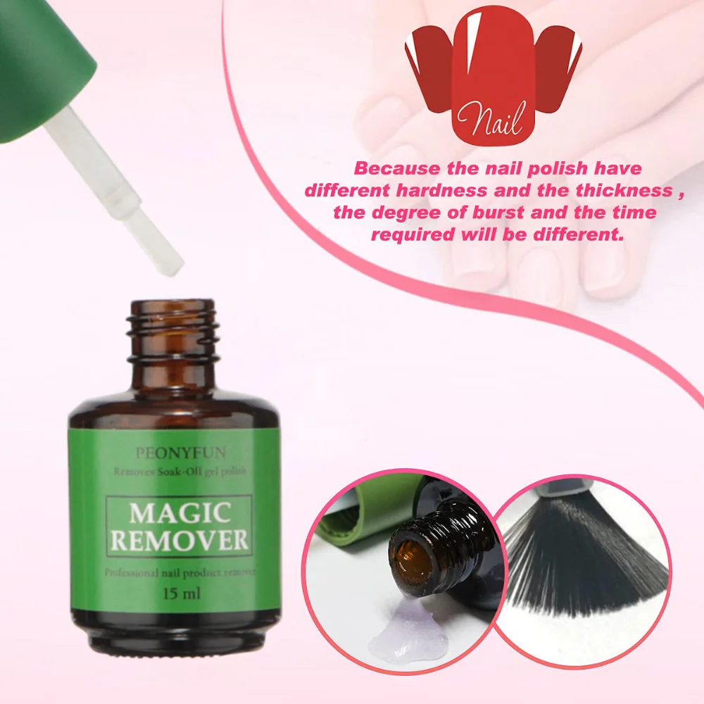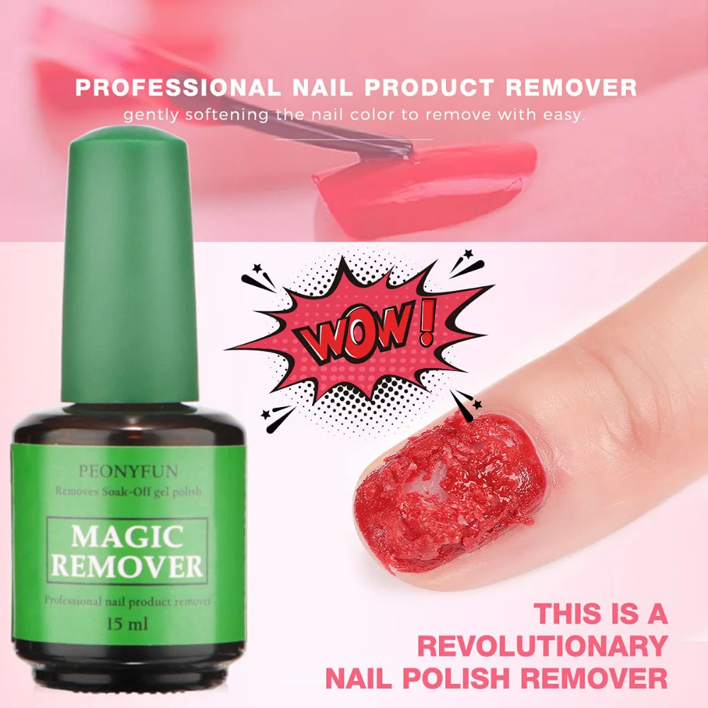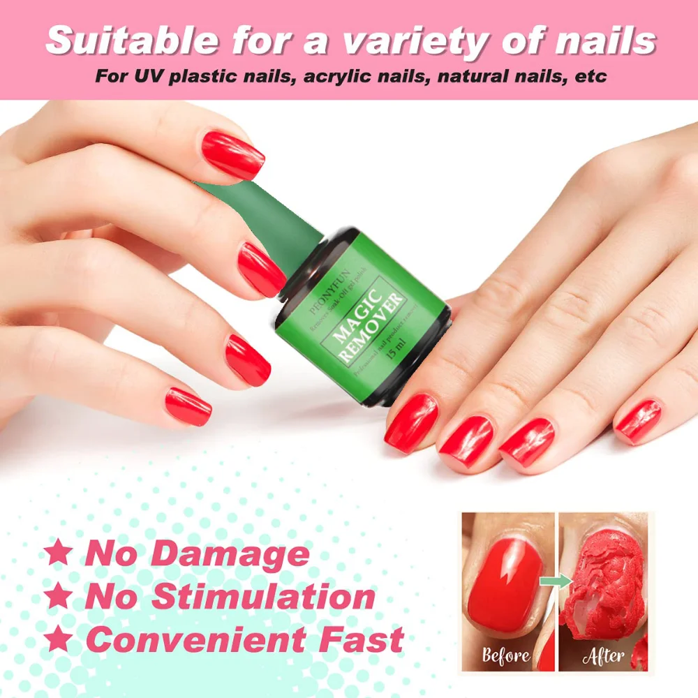 PEONYFUN Gel Polish Remover Kit: Gel nail polish remover kit, there’s 1 bottle of gel nail polish remover, 15ml. Latest formula for easy nail polish removal.