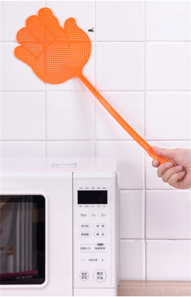 durable plastic that has a giant hand shaped swatter with an easy hold handle.