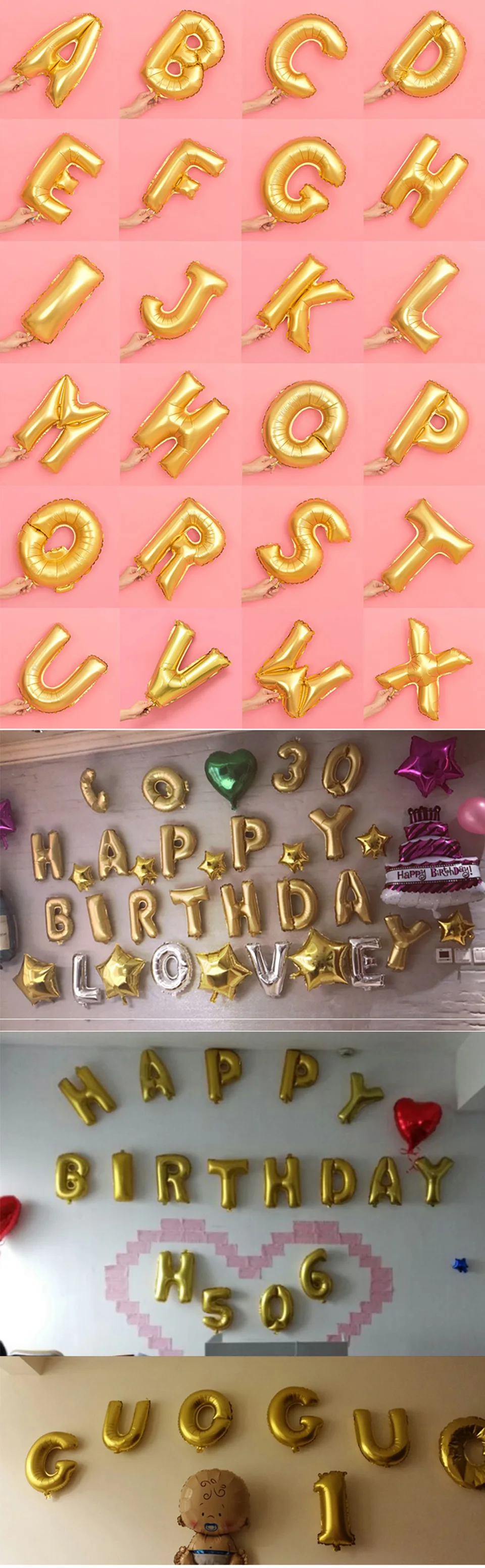 16 inch Gold Letter number Foil Balloons Inflatable Aluminum Ball Wedding Party Decoration Balloon Happy Birthday Party Supplies