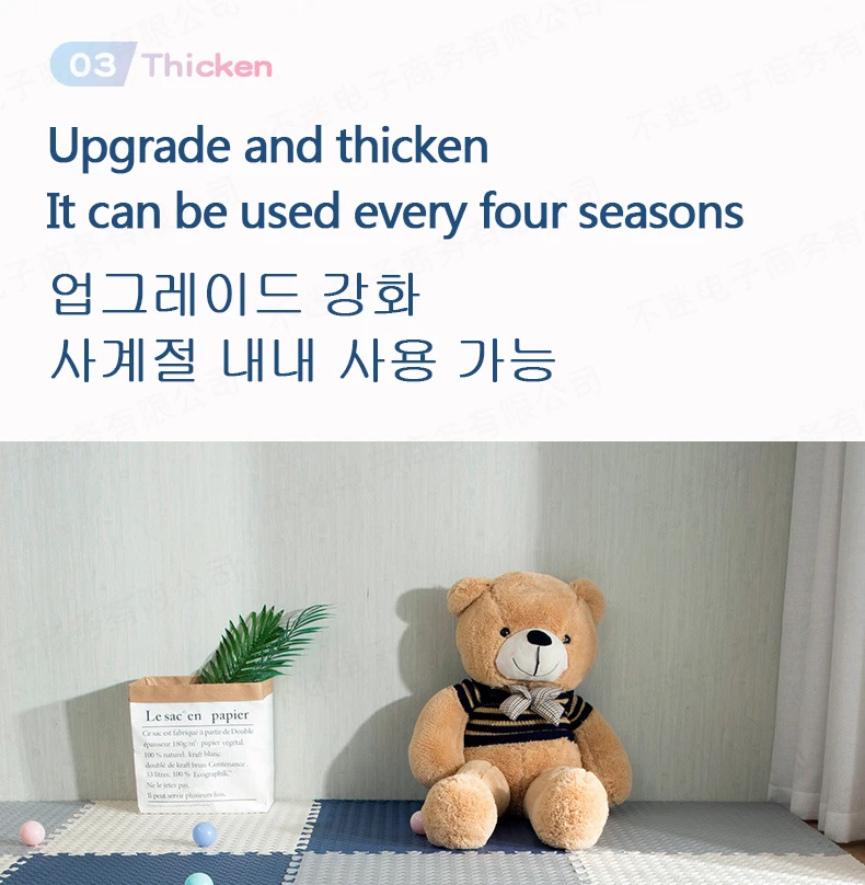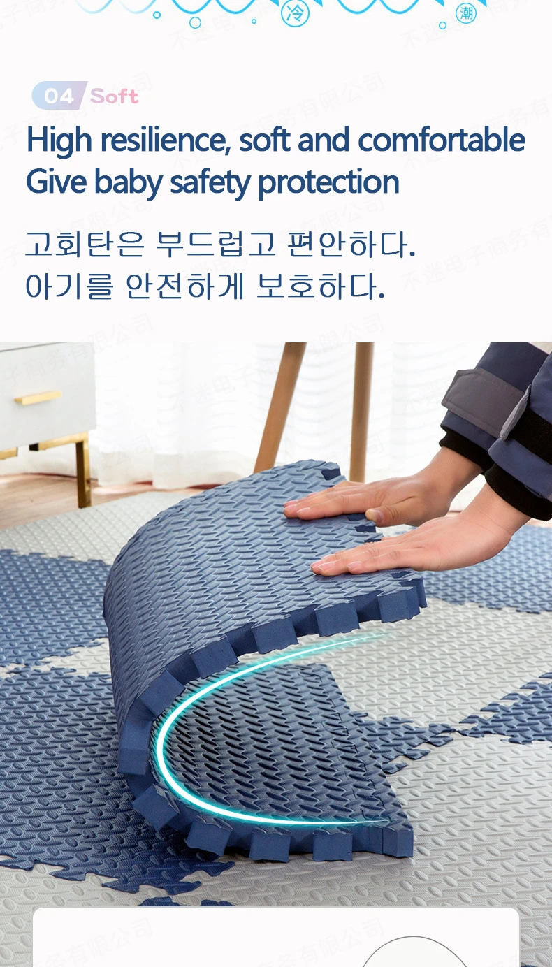 The environmental protection odor-free children’s crawling mat can be cut at will and is anti-skid, so it is convenient to store the product. After receiving it, it is recommended to wash it first and then dry it. It can be used normally
