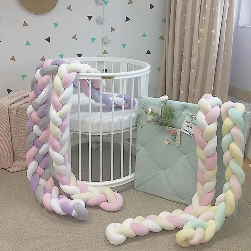 1M-4M Baby Bed Bumper Braid Knot Long Handmade Knotted Weaving Plush Baby Crib Protector Knot Pillow Room Decor Bedding Set