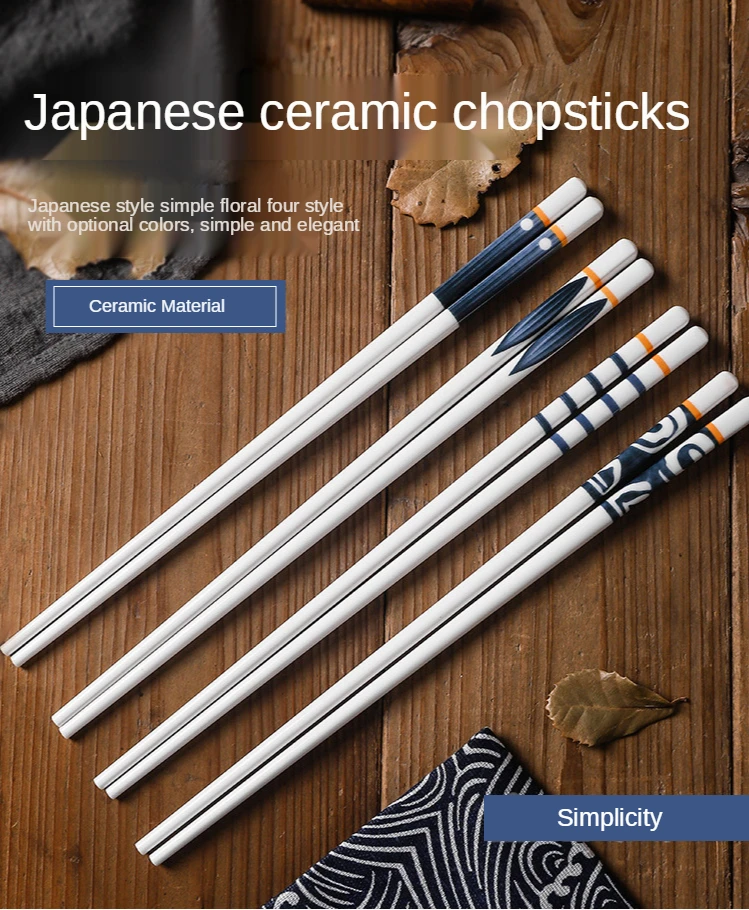 1pair Japanese Style Ceramic Chopsticks Creative Household Chopsticks Anti-mold Sushi Food Chopsticks Kitchen Supplie