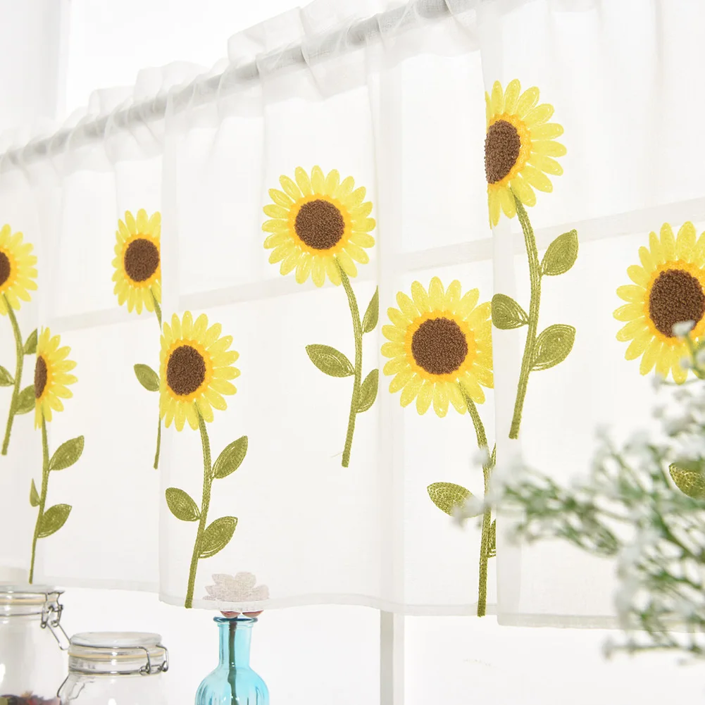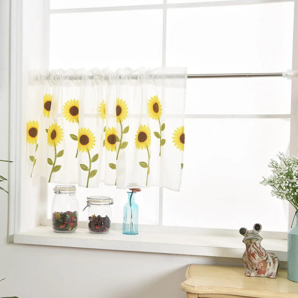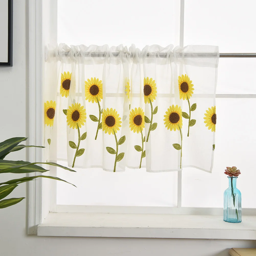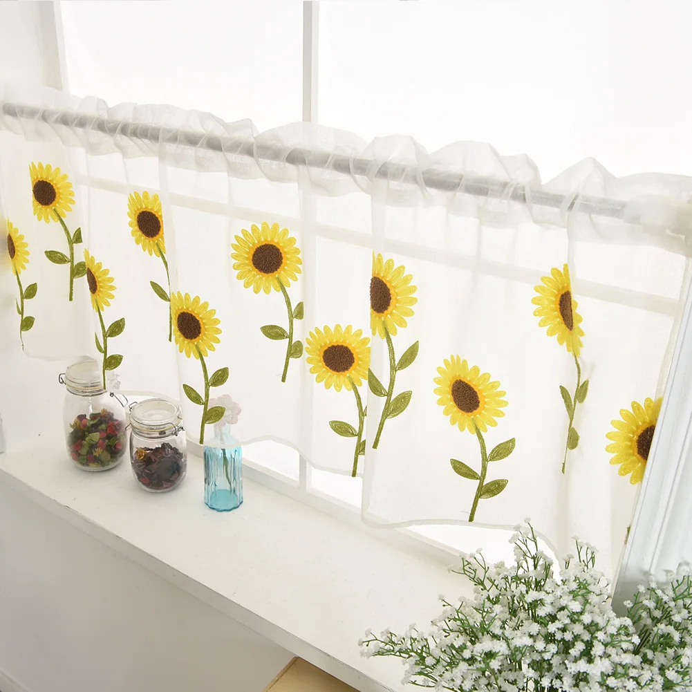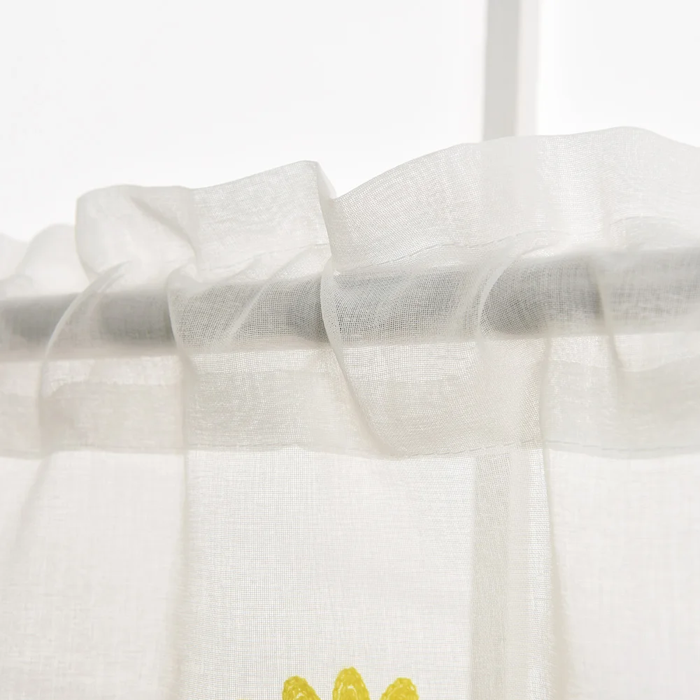 1PC 1*0.5m Curtain Cute Daisy Embroidered Half-Curtain Mini for Bedroom Kitchen Door Drape Cafe Window Panel Sheer Tulle Curtain