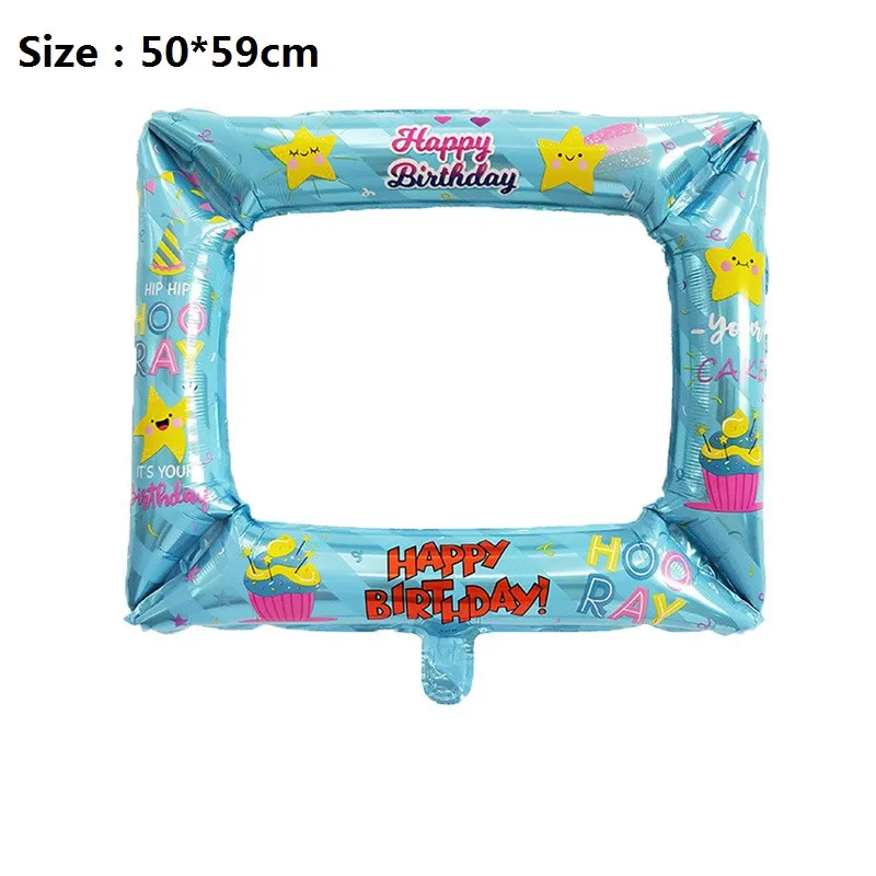 1Pcs Birthday Photo Booth Foil Balloons Happy Birthday Balloon Photo Frame Globos Photo props Birthday Party Decorations