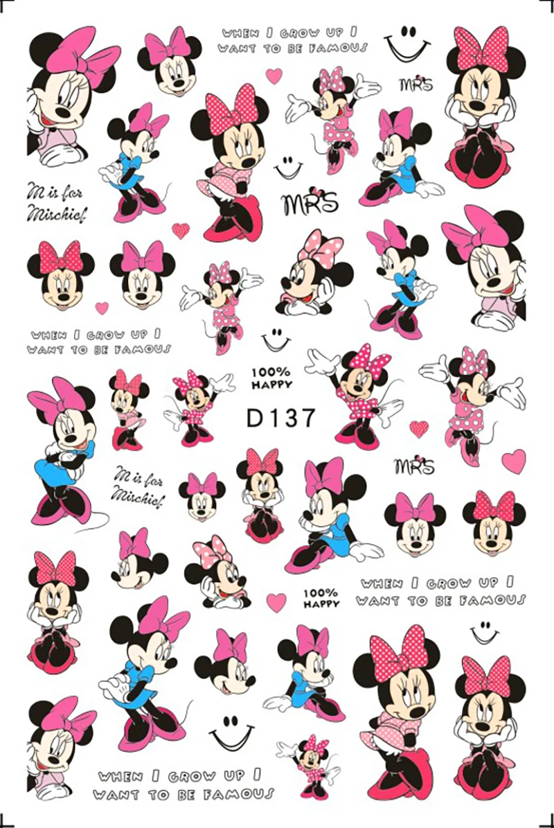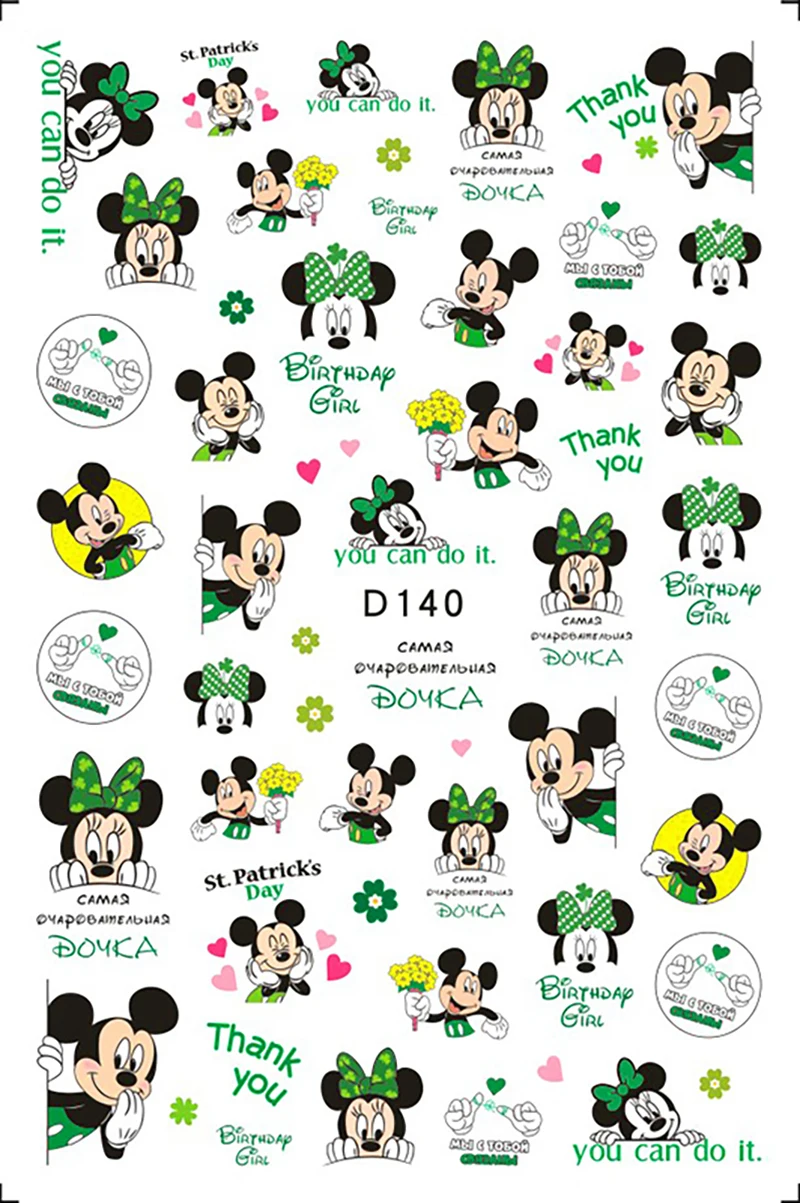 1PCS New Mickey Mouse 3D Adhesive Nail Art Sticker Disney Princess Stardeloo Cartoon Nail Art Decal Sticker Nail Parts Manicure