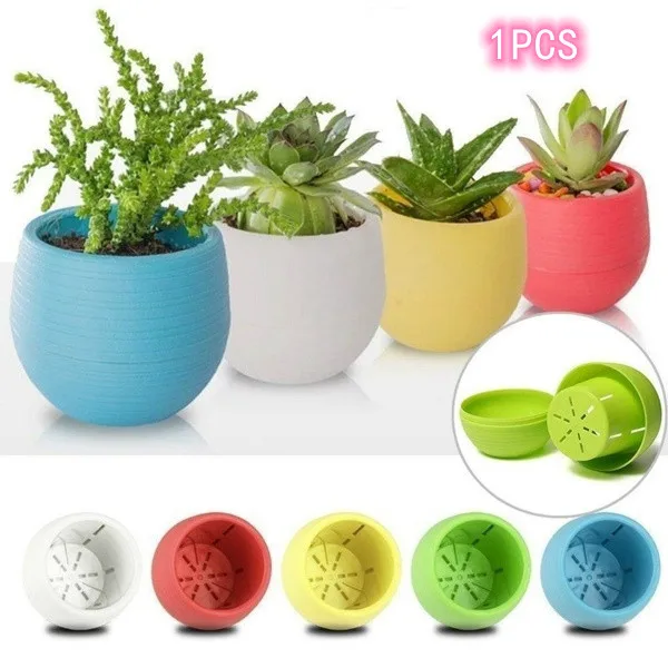 1PCS Small Cute Round Home Garden Office Decor Planter Plastic Plant Flower Pots