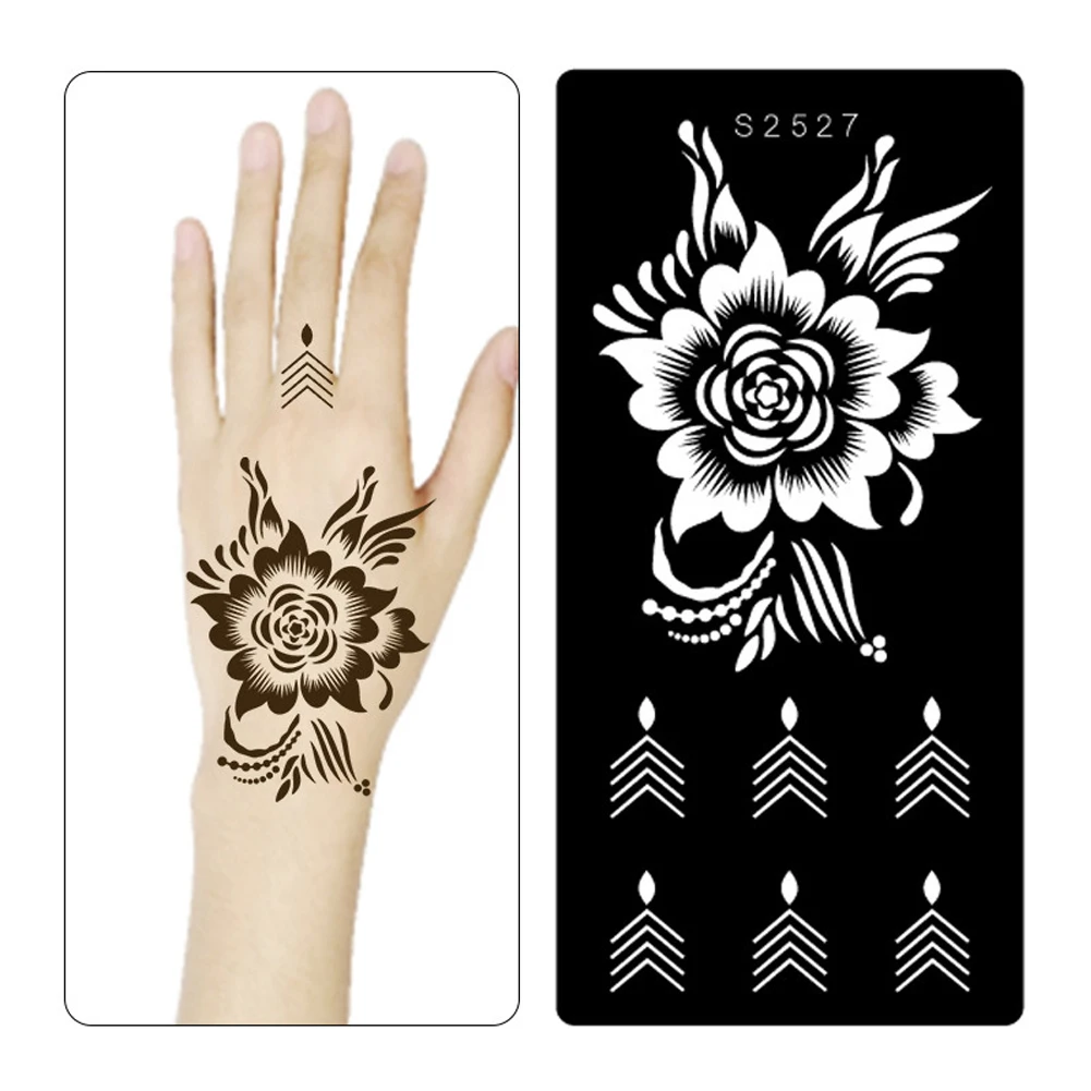 1Sheet Tattoo Stencils Henna Templates Hand Foot Body Art Airbrush Paint Templates Decal DIY Flower Painting
