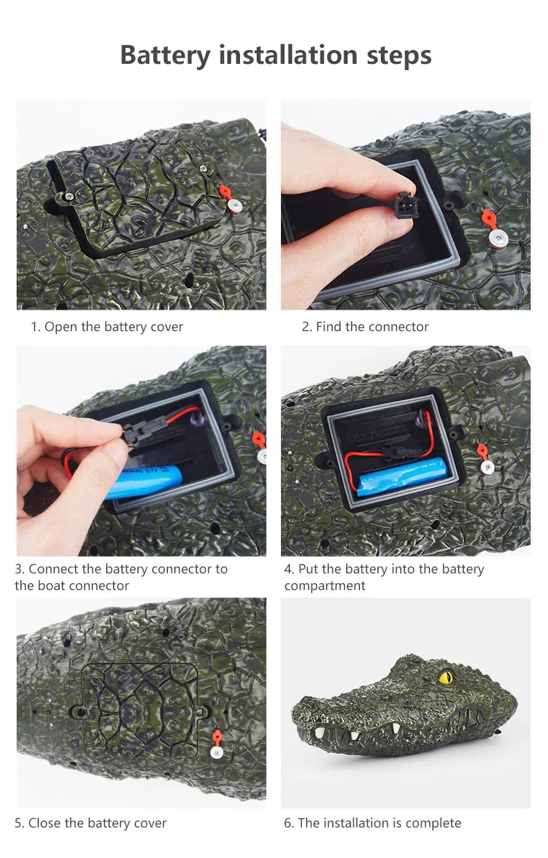 2.4G High-speed Remote Control Boat Simulation Crocodile Head Prank Fun Prank Toy Horror Watercraft Spoof Toy Rechargeable