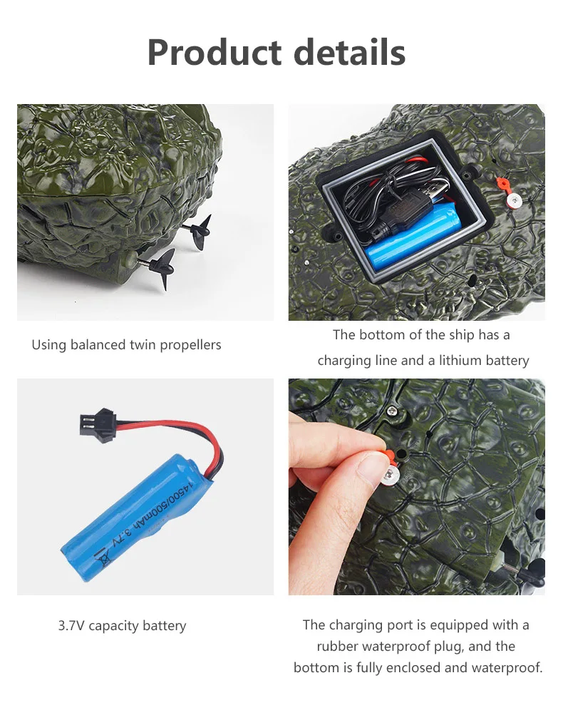 1 * Remote control ship 1 * Remote control with antenna 1 * battery 1 * USB charging cable (with battery) 1 * User manual (printed on color box)