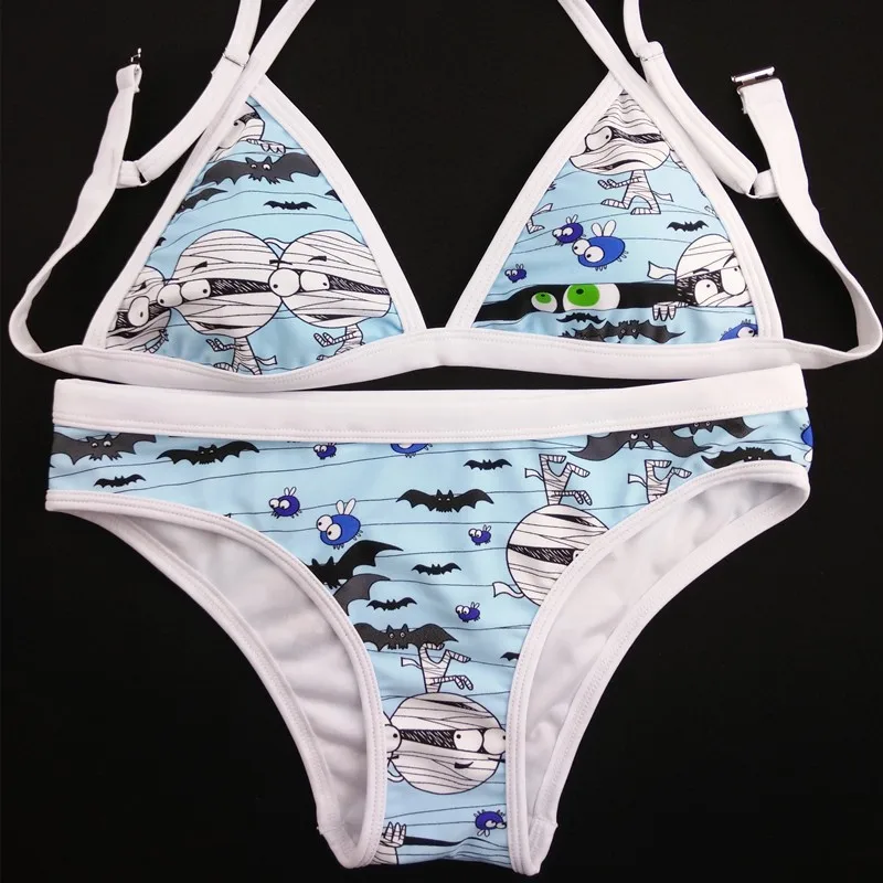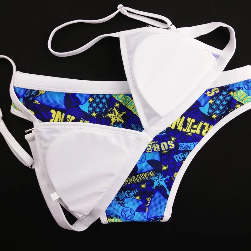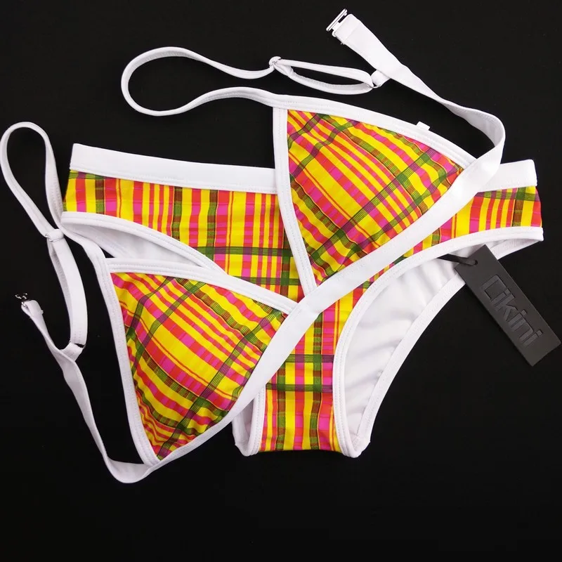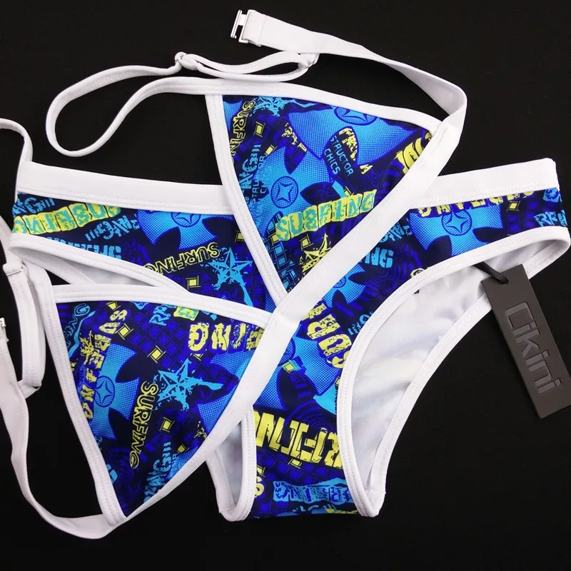 2020 Hot Design Retro Style Simple Model Brazilian Sexy Printing Swimsuit Bikinis Halter Padded Biquinis Feminino 2018 Swimwear