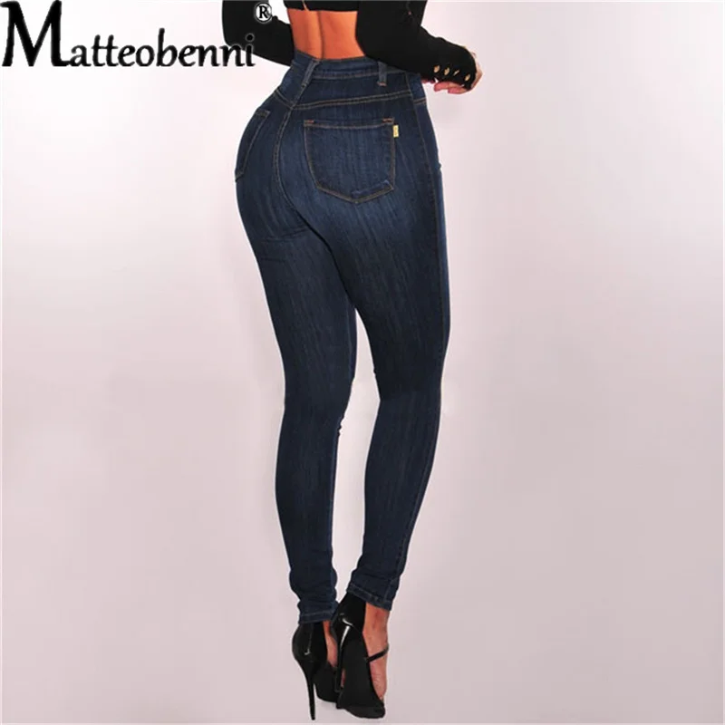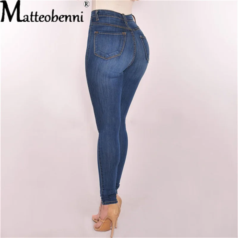 2021 Women Stretch Slim Jeans High Waist Push Up Hips Buttons Elastic Cotton Blue Denim Pants Female Casual Trousers