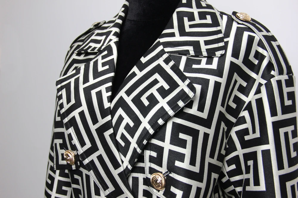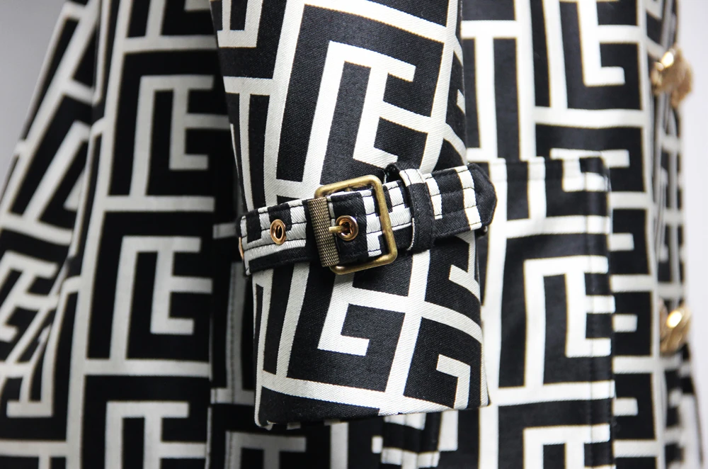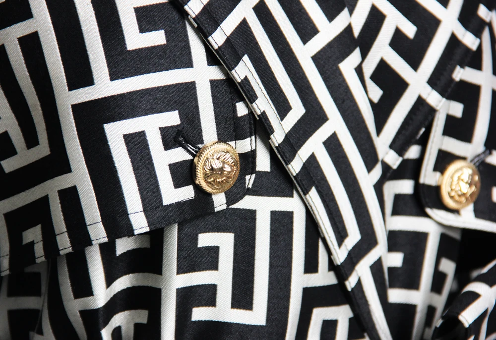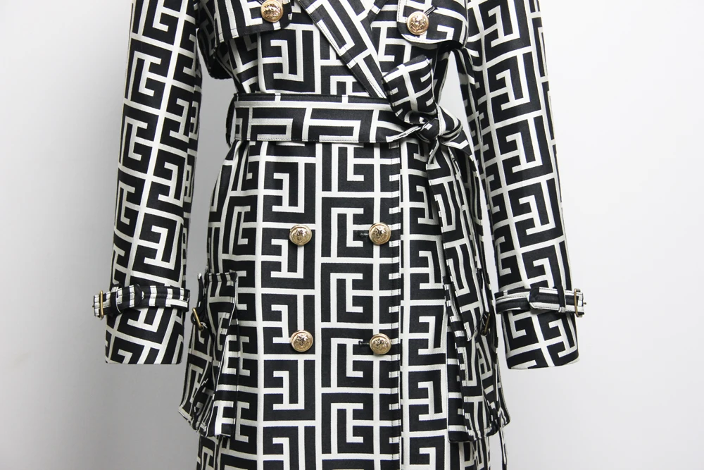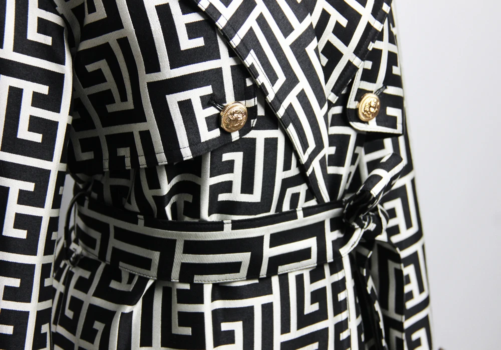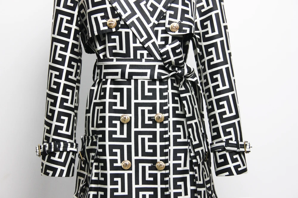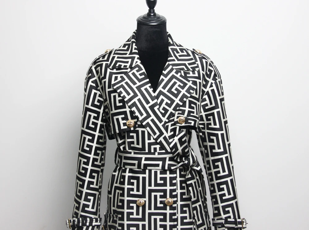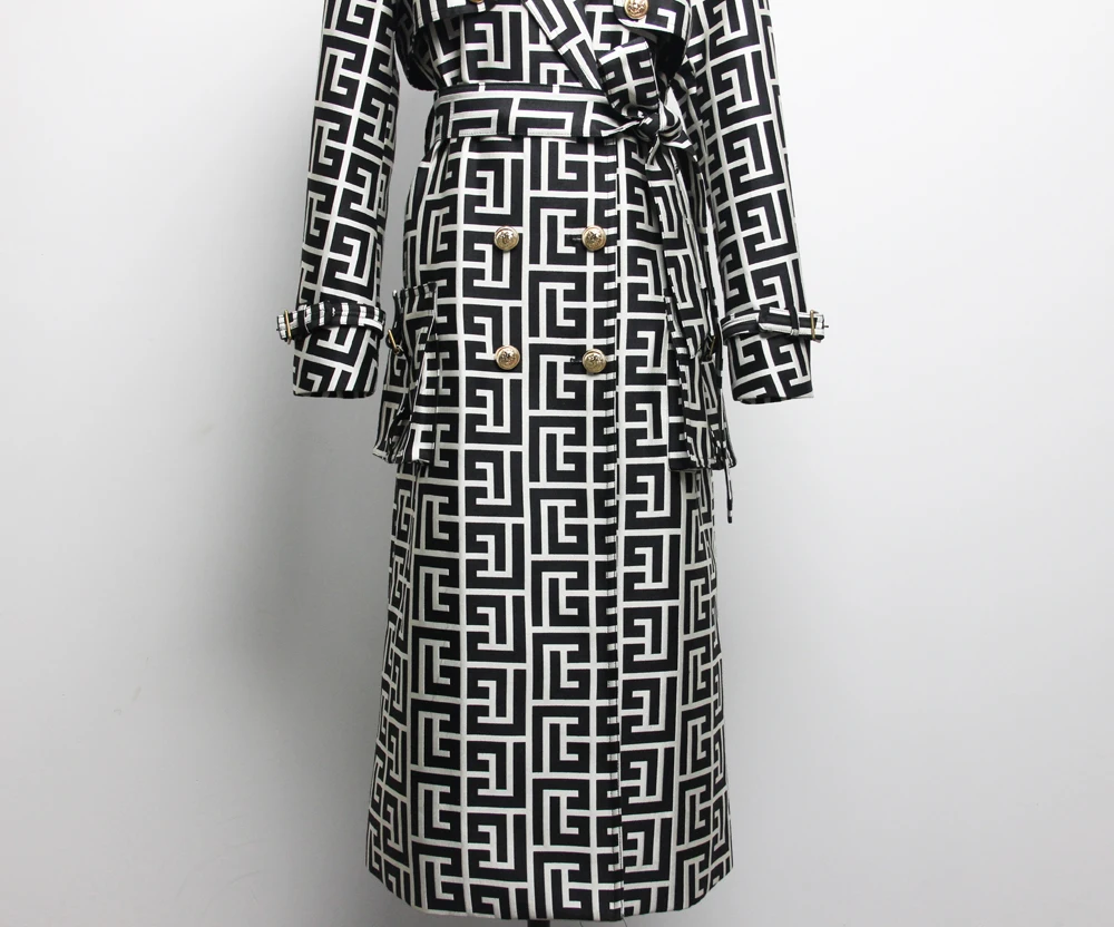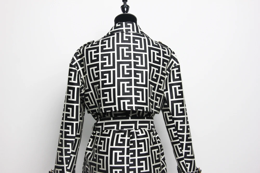 2022 Casual European And American Print Belted Double-sided Hepburn Coat Temperament Commuter High-end Mid-length Trench Coat