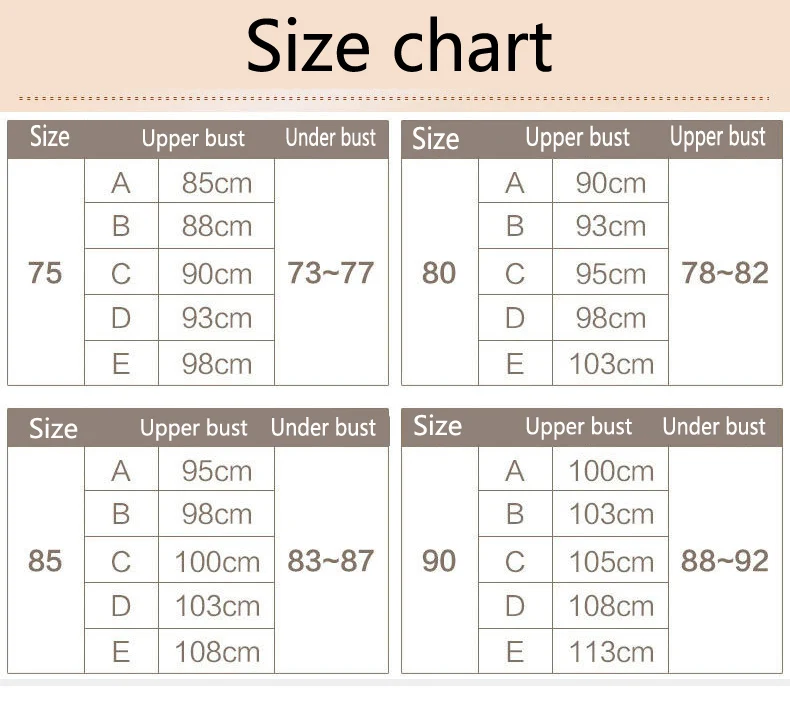 Chest Size: 75,80,85,90(=size: 34.36,38,40)