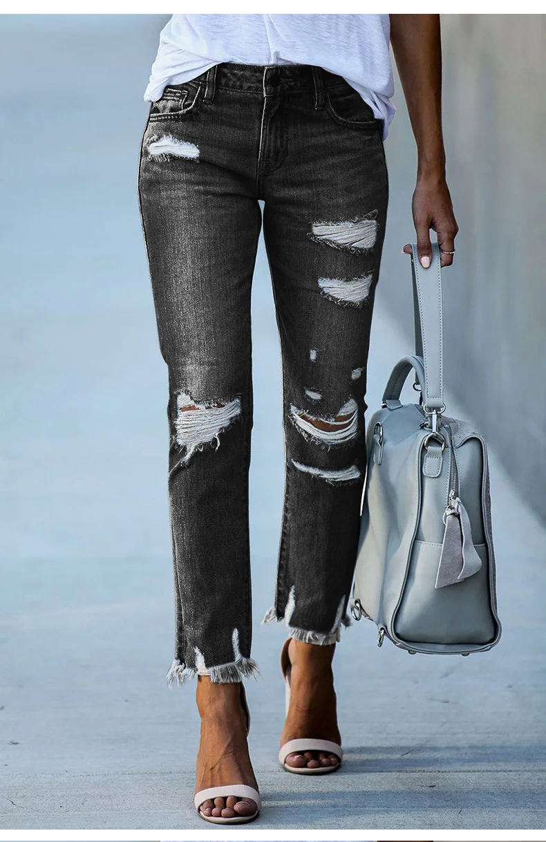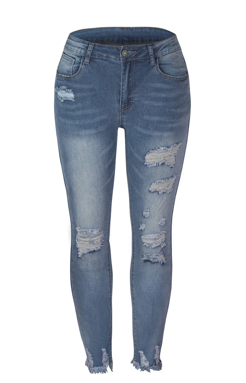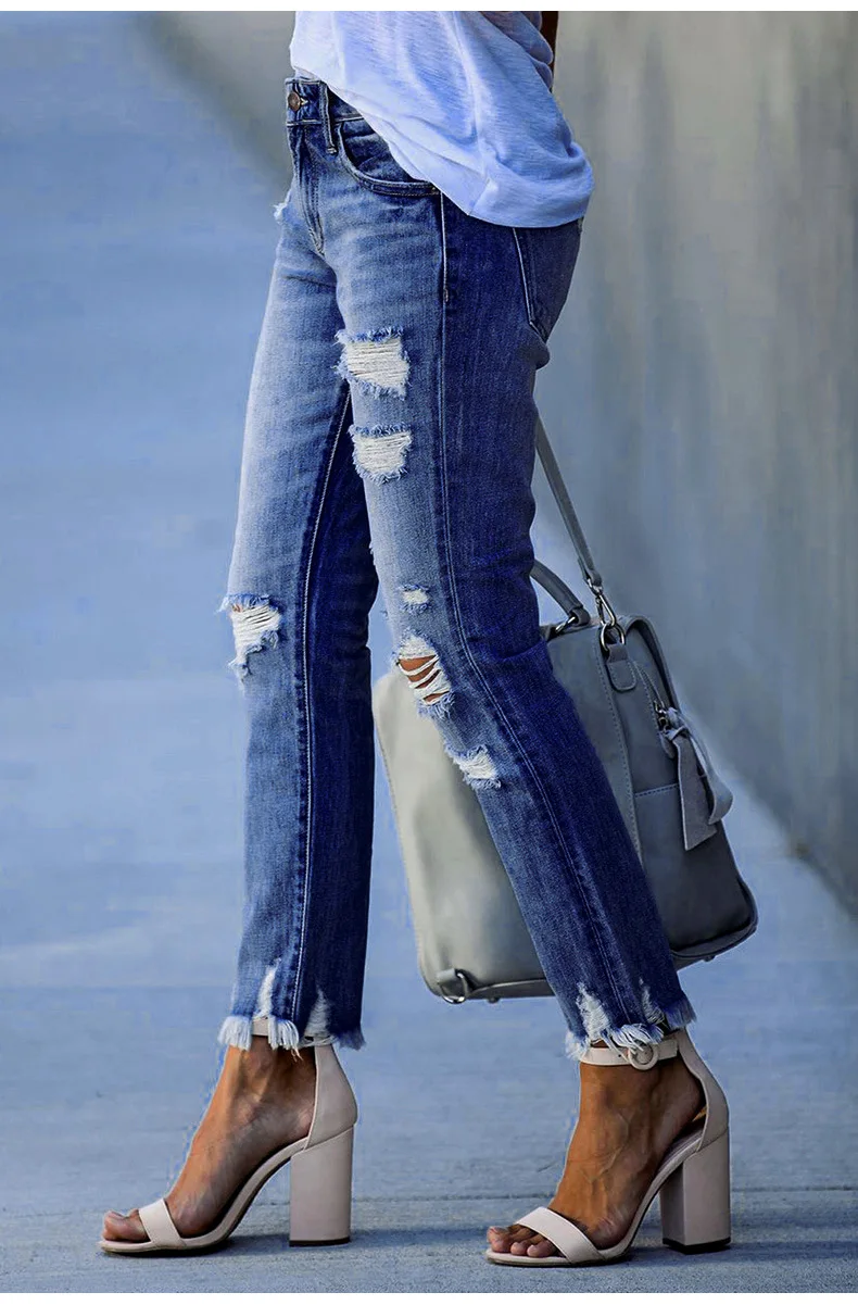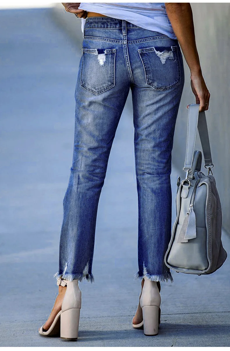 2022 New Women Mid Waist Ripped Tassel Jeans Fashion Casual Slim High Stretch Denim Pencil Pants S-2XL
