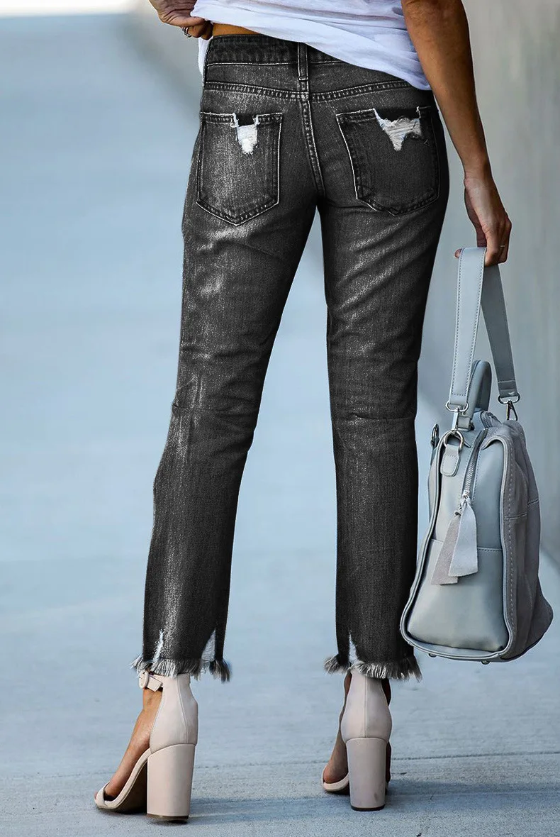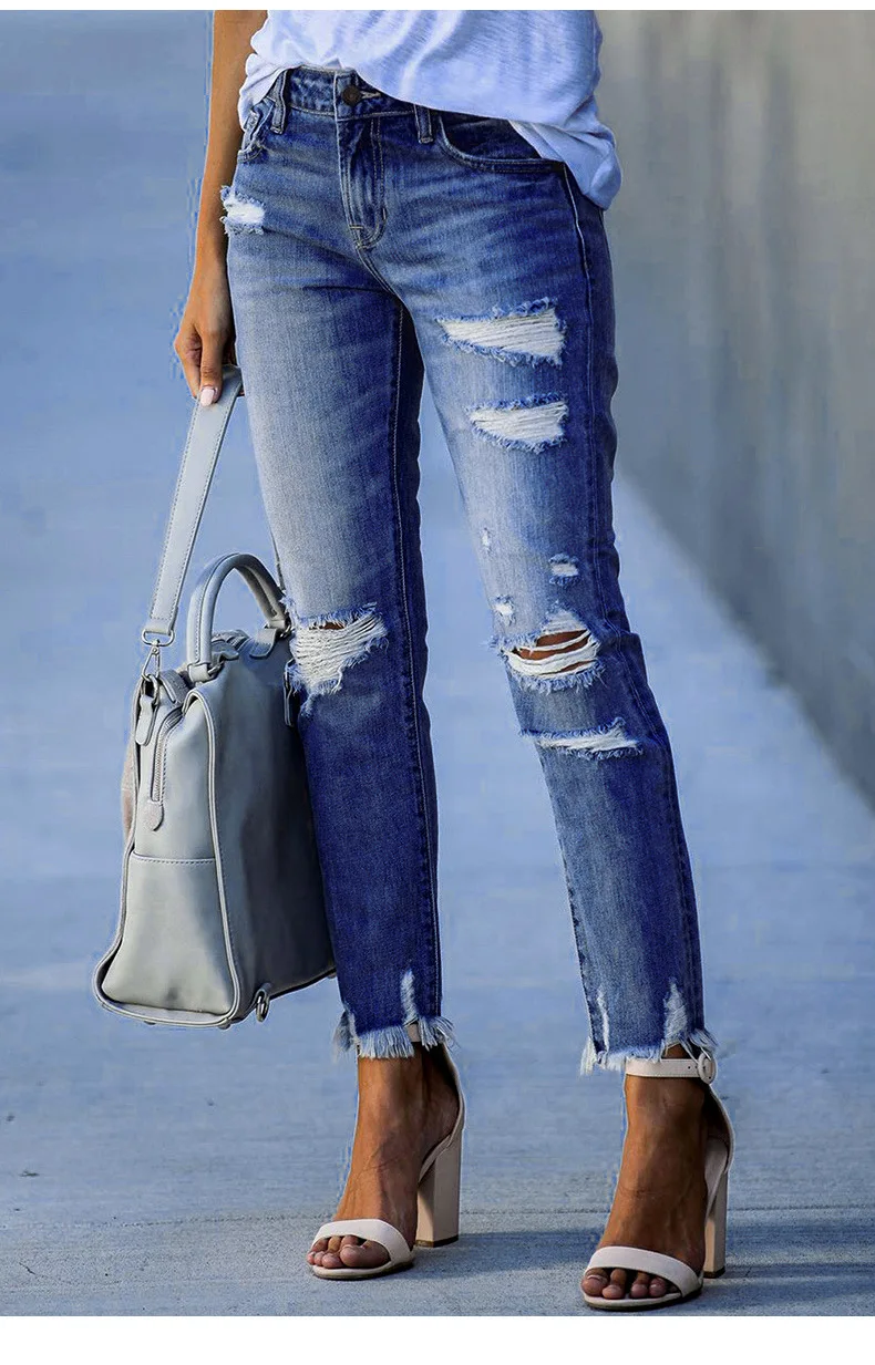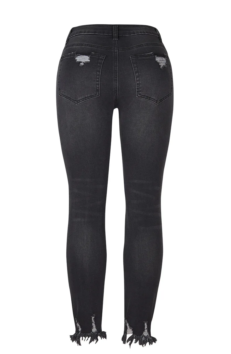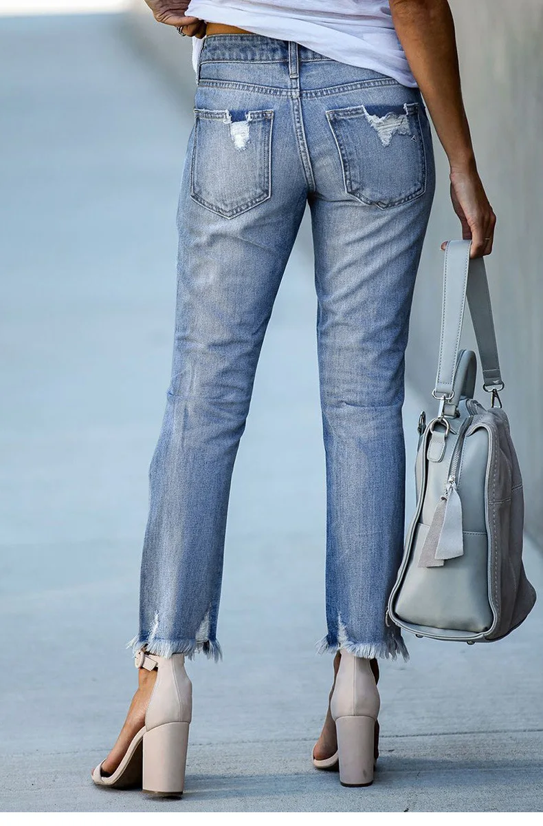 2022 New Women Mid Waist Ripped Tassel Jeans Fashion Casual Slim High Stretch Denim Pencil Pants S-2XL
